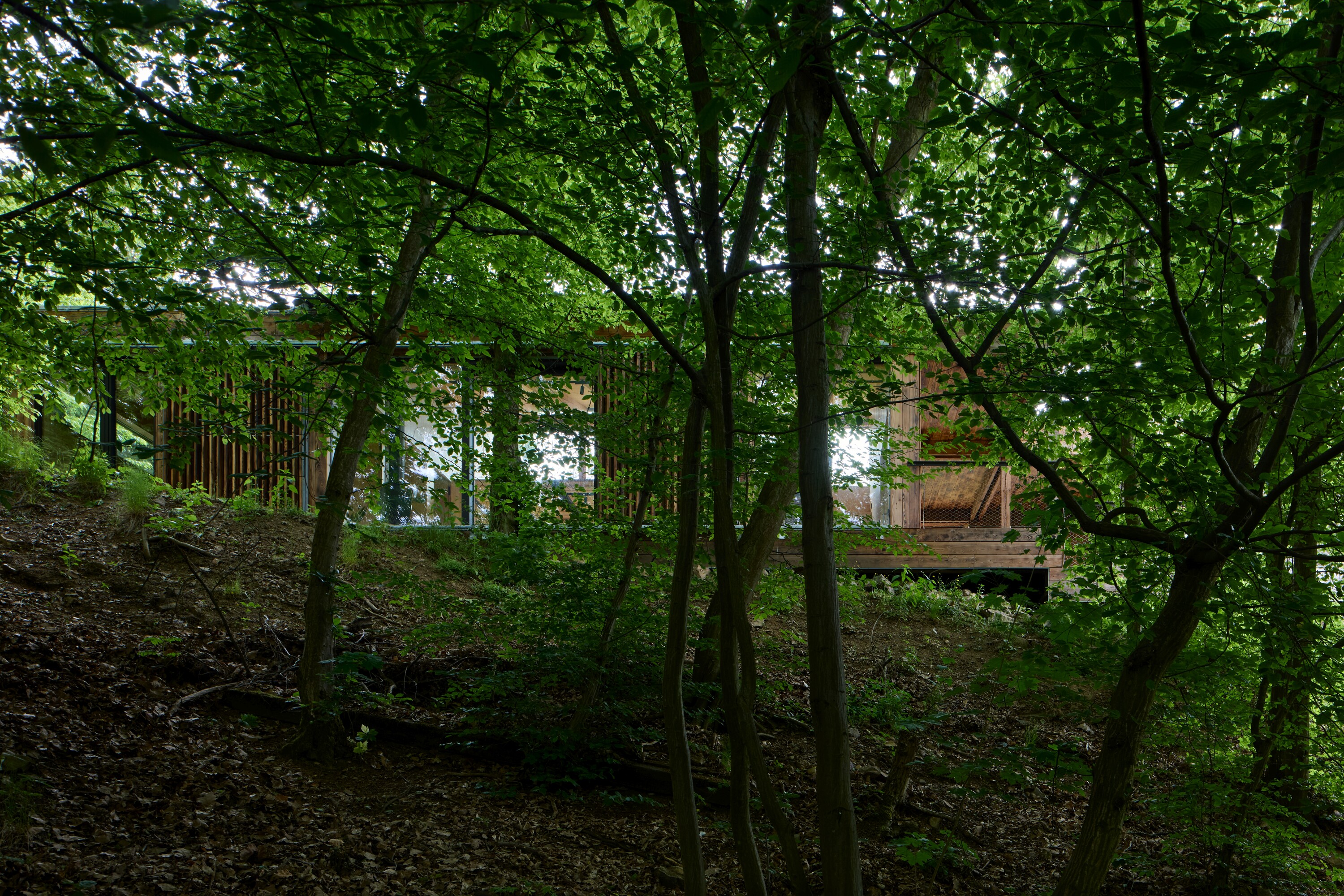 부지의 형태와 지형, 자라난 나무들을 고려한 결과, 정원에서 바라보는 사자바 계곡과 메드니크산 정상의 조망을 유지하는 것이 중요했다. 이에 증축부는 숲과 정원의 경계에 별동 형태로 배치되었으며, 기존 주택과는 성숙한 참나무 한 그루를 품은 지붕이 있는 테라스로 연결되었다. 정원 방향으로는 덮개가 있는 보행 통로가 계획되었고, 건물은 미닫이창을 통해 테라스와 계곡 쪽으로 열리며, 반대편 모서리는 기존 건물과 맞닿도록 닫힌 형태로 배치되었다. 스튜디오 내부에는 단순한 매달린 갤러리가 삽입되어 있다. 증축부의 형태적 언어는 기존 주택의 맥락을 따르고 있다.