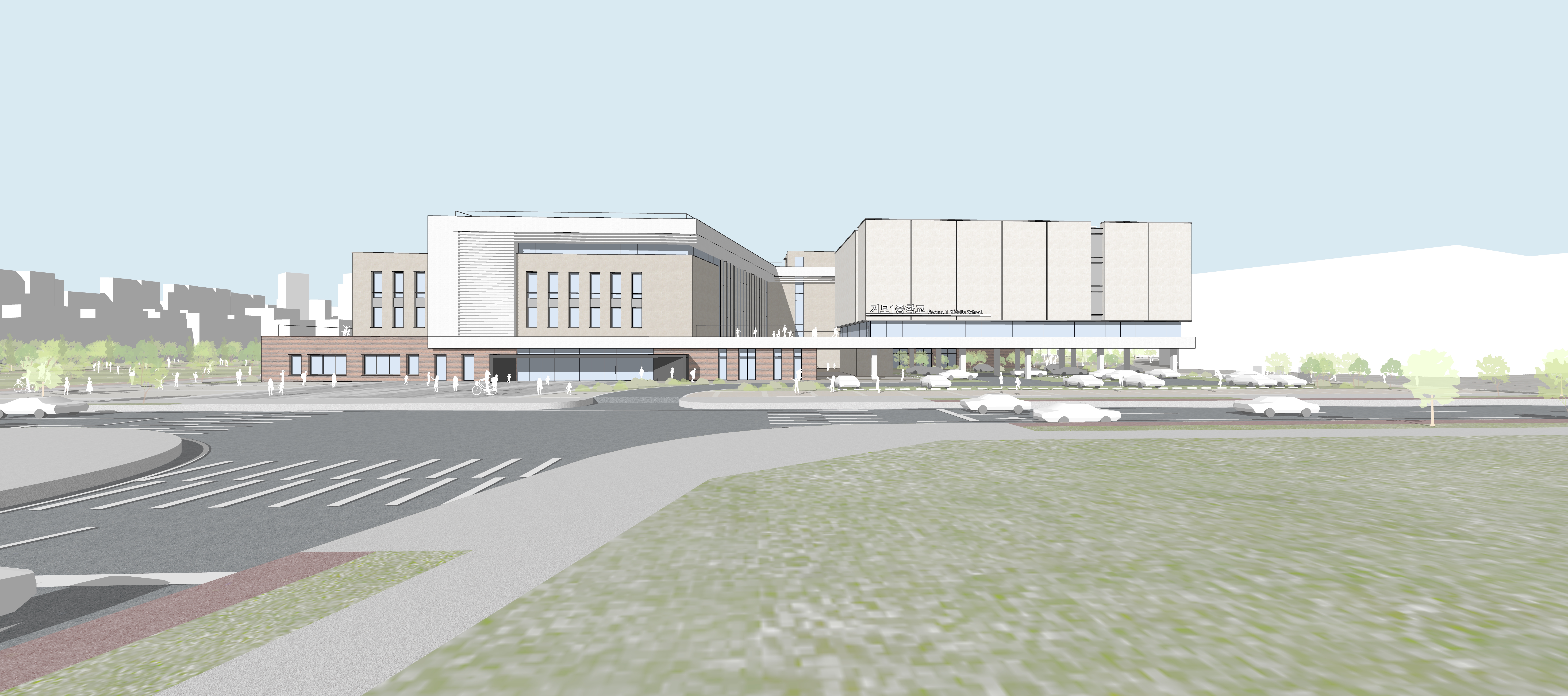 새롭게 개발되는 시흥거모 공공주택지구 내에 위치하는 거모1중학교는 남측과 동측에 공원으로 둘러싸여있다. 대상지의 형상을 반영한 매스는 공원을 향해 양방향 열려있어 어디서나 공원조망이 가능한 교육공간을 계획하였다. 도시의 맥락을 따라 열린 주민개방시설은 학교숲과 연계하여 다채로운 커뮤니티 환경을 제공하고 자연과 함께하는 실내광장을 통해 학생들이 건강한 꿈을 키울 수 있는 자연친화적인 학교 “EDU-GARDEN”을 계획하였다.