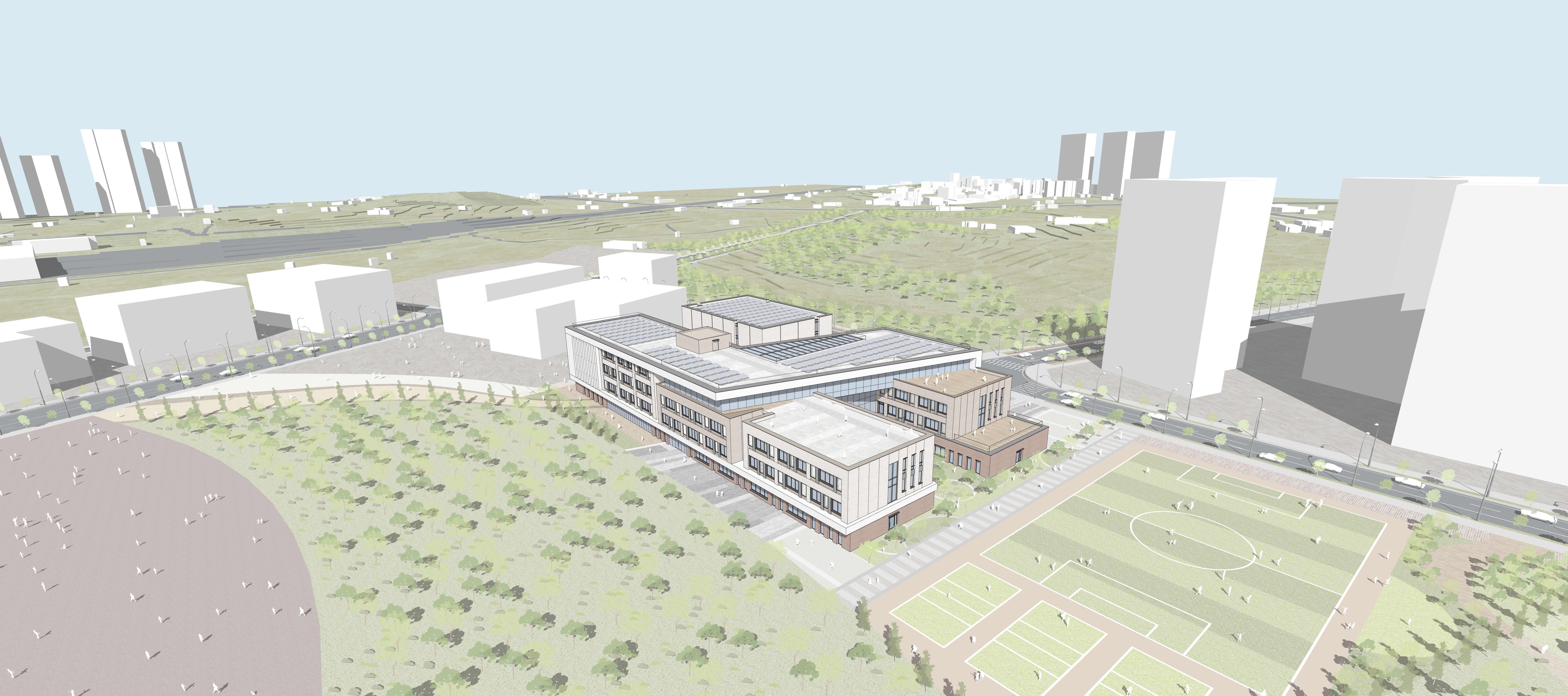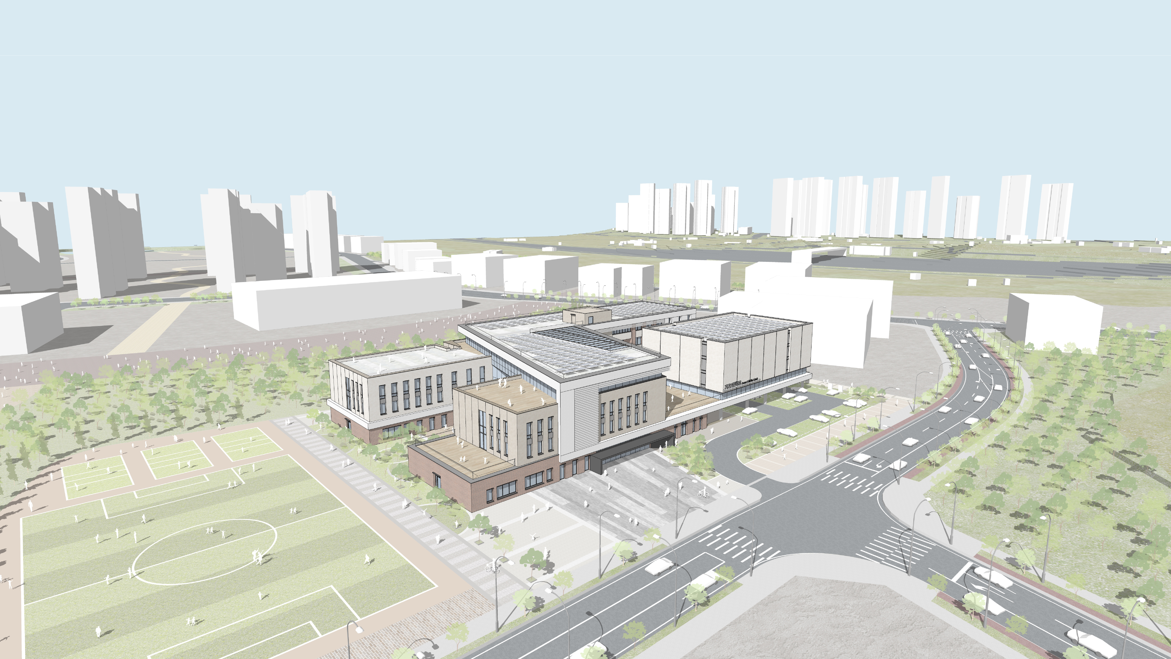 남측 체육공원과의 적극적인 연계와 학교숲 배치로 녹음을 끌어들이고 자연 속 다채로운 교육 환경을 만드는 자연친화적 공간 마련