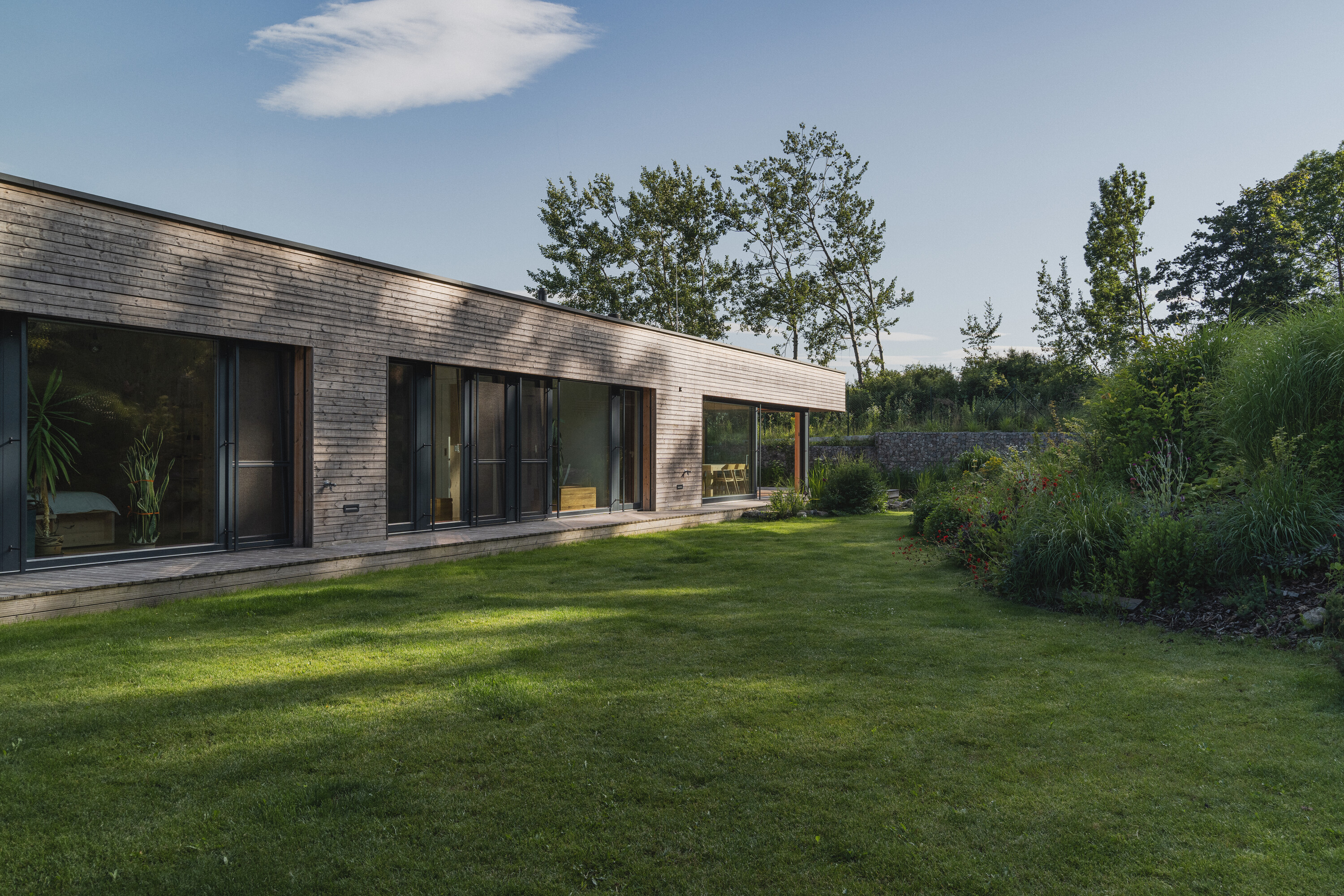 작은 마을 가장자리에 자리한 이 단독주택은, 시간이 지나며 변할 풍경을 미리 읽어낸 설계 전략에서 출발한다. 설계 당시 대지는 야생화가 자라는 초지로 둘러싸여 있었지만, 건축가는 머지않아 이 풍경이 개발될 것이라 판단했다. 이에 집의 주요 시선을 외부 경관이 아닌 정원과 숲을 향하도록 계획해, 시간이 흘러도 변하지 않을 ‘자기만의 세계’를 지켜내는 구조를 만들었다.