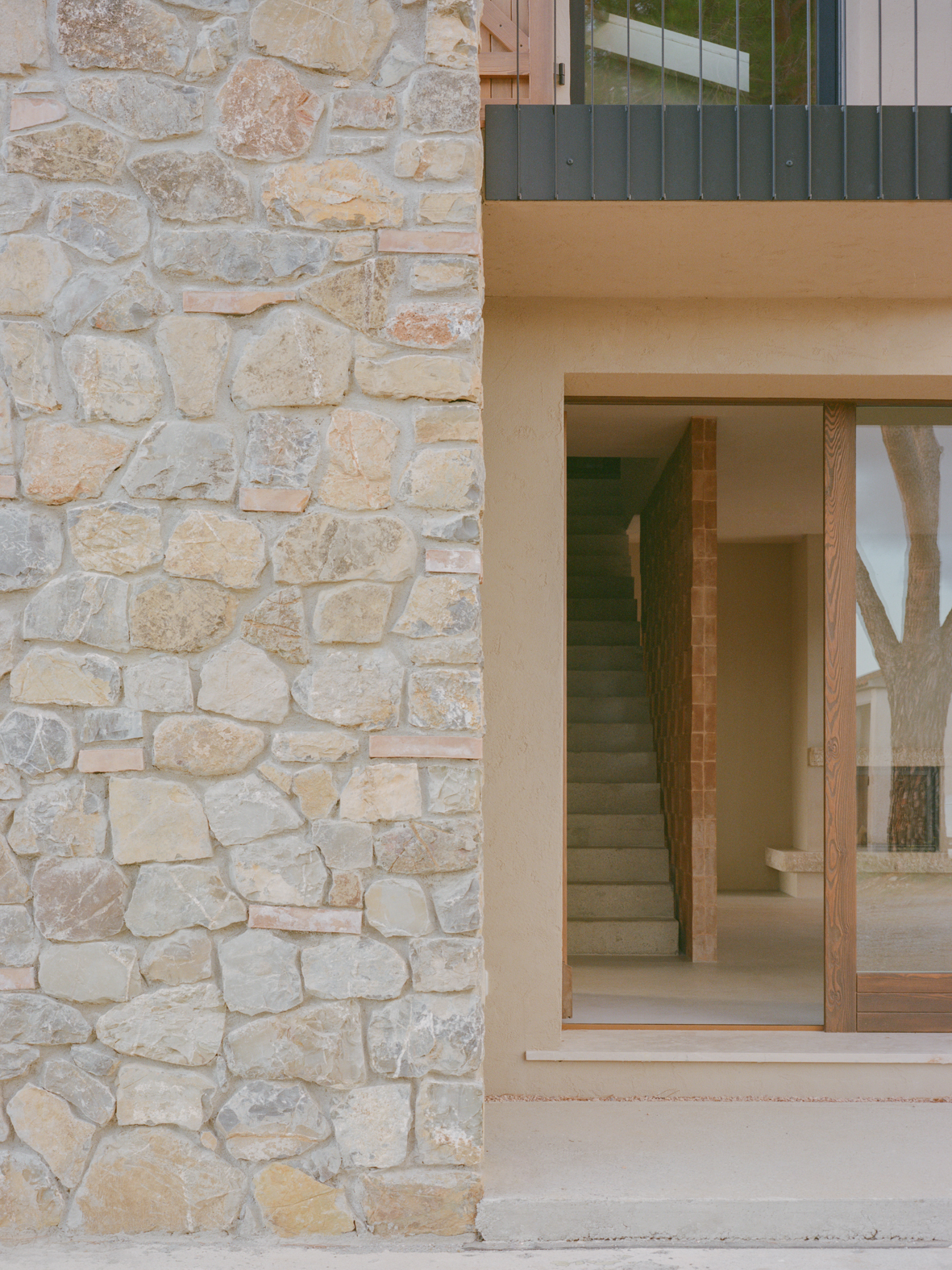설계는 기존의 구조와 구성 원칙을 유지하는 데서 출발했다. 응회암과 석재 벽체 등 주요 구조 요소는 그대로 보존됐으며, 외부 계단은 단순한 동선 장치를 넘어 조형적인 석재 벽으로 재해석되어 건물의 ‘두 번째 입면’으로 기능하게 됐다.