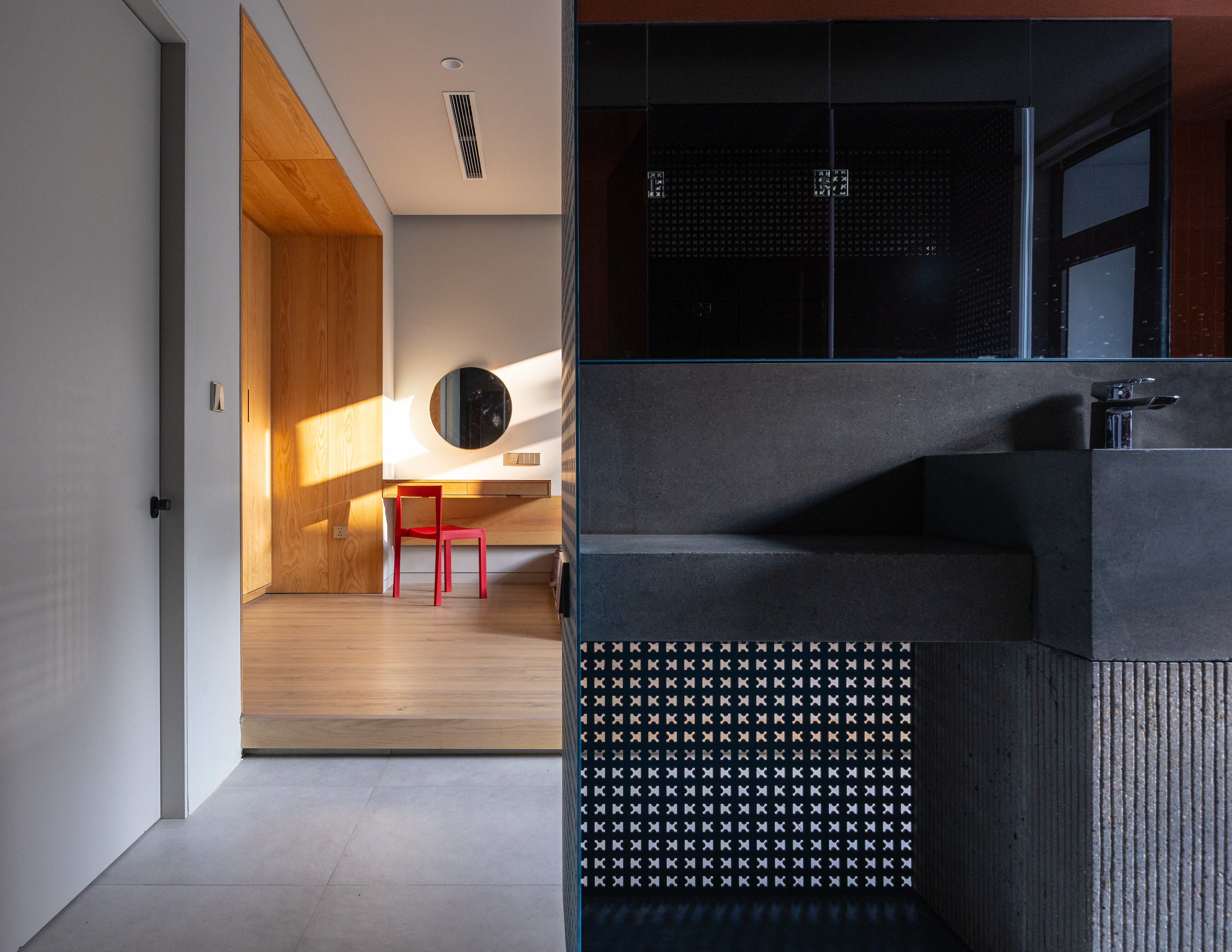 구워낸 벽돌, 강재, 목재, 노출 콘크리트와 같은 재료들은 빛의 변화와 만나며 실내 공간에 안정적인 긴장감을 형성한다. 재료가 지닌 물성은 과장되지 않은 방식으로 드러나고, 그 위에 쌓이는 빛의 리듬은 공간에 고요한 깊이를 더한다. B.Red House는 외부의 획일적인 도시 풍경 속에서, 내부의 공간 구성과 감각을 통해 또 다른 주거의 가능성을 조용히 제안한다.