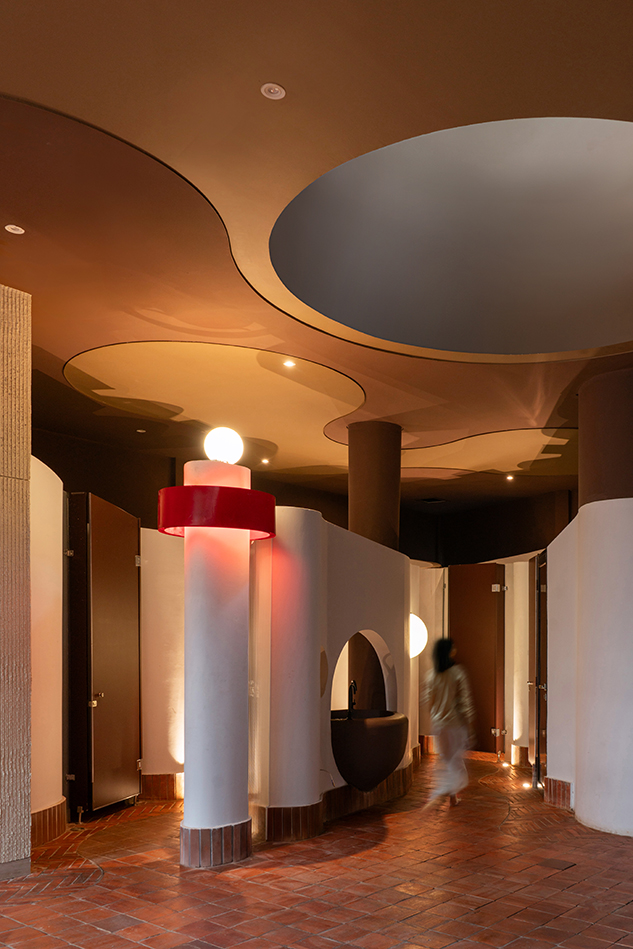 대지 계획 역시 생태를 우선하는 방식으로 전개된다. 전체 부지 중 최소 40%는 지면을 비워두고, 기존에 자리한 높이 20미터의 나무들을 그대로 보존한다. 상업 공간과 활동 영역은 이 나무들 사이로 엮이듯 배치되며, 조경이 건축의 부속물이 아닌 출발점으로 작동한다. 건축의 매스는 나무를 피해 생성되었고, 그 결과 파라메트릭 외피와 자연이 맞물리는 유동적인 공간 구성이 만들어졌다.