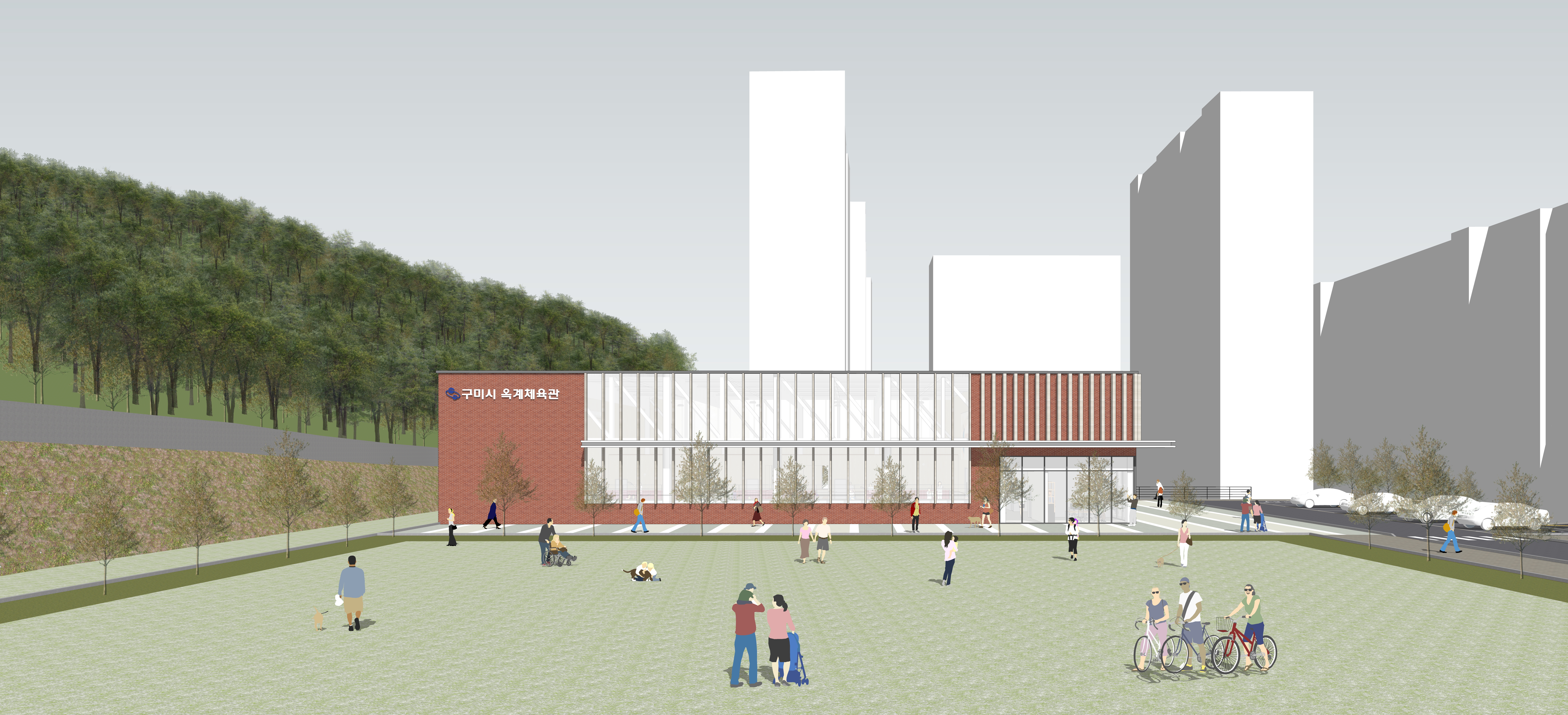 다수가 이용할 수 있는 개방형 공간으로 열린 체육센터를 계획하였다. 지역주민들은 이곳에 모여 다양한 체육활동들과 소통 · 교류의 공간을 조성하고 주변 맥락을 고려한 안정감있는 입면계획으로 옥계동의 상징성을 가지는 체육센터로 계획하였다.