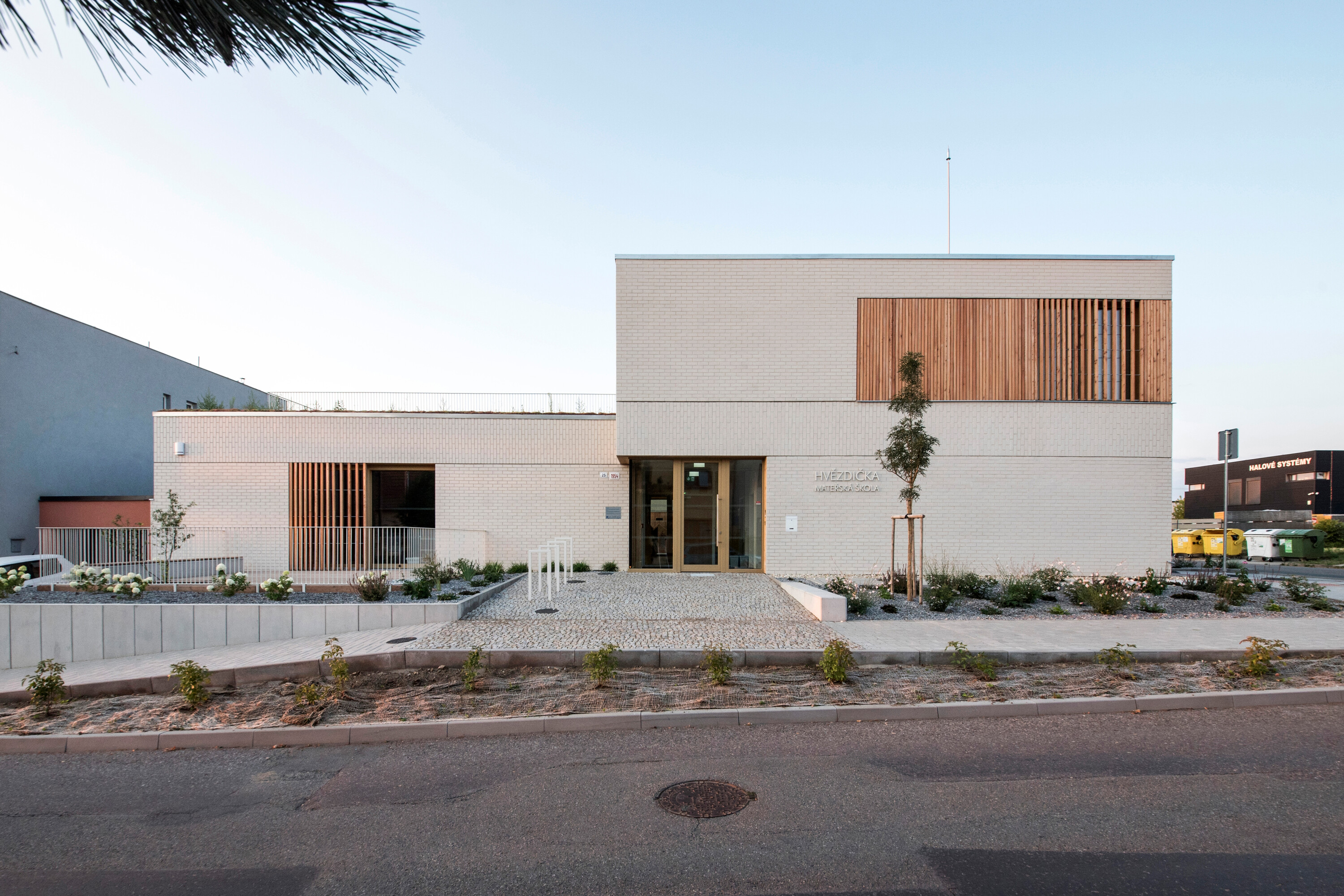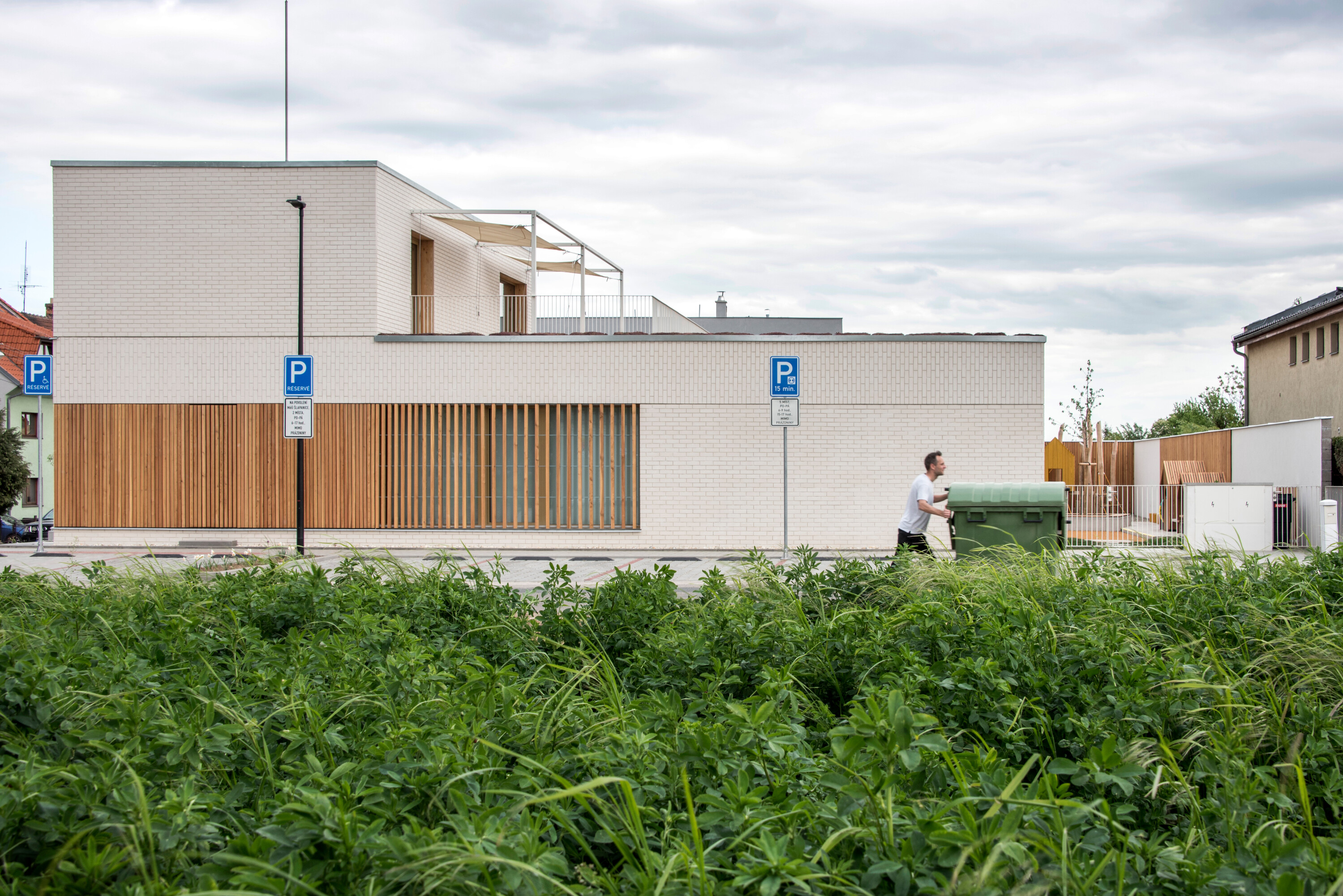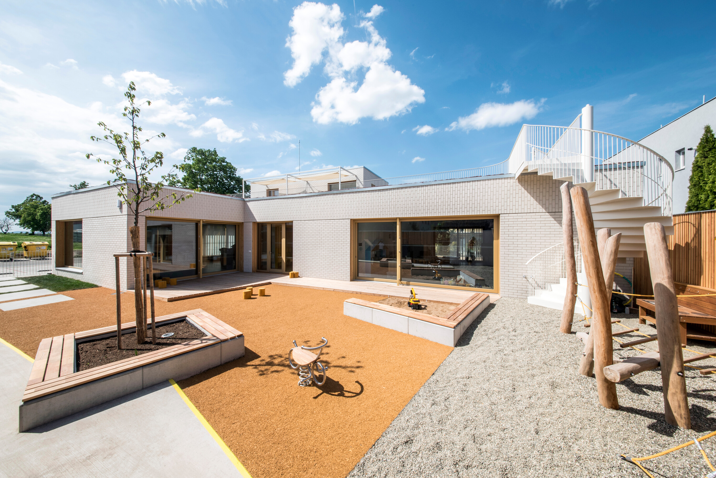 체코의 소도시 슐라파니체(Šlapanice)에서는 주거지 한가운데에 있던 옛 동네 구멍가게 부지를 새로운 유치원 부지로 선택했다. 단독주택들 사이에 자리한 이곳은 조용하고 친근한 환경을 갖추고 있었지만, 대지는 비교적 협소했다.