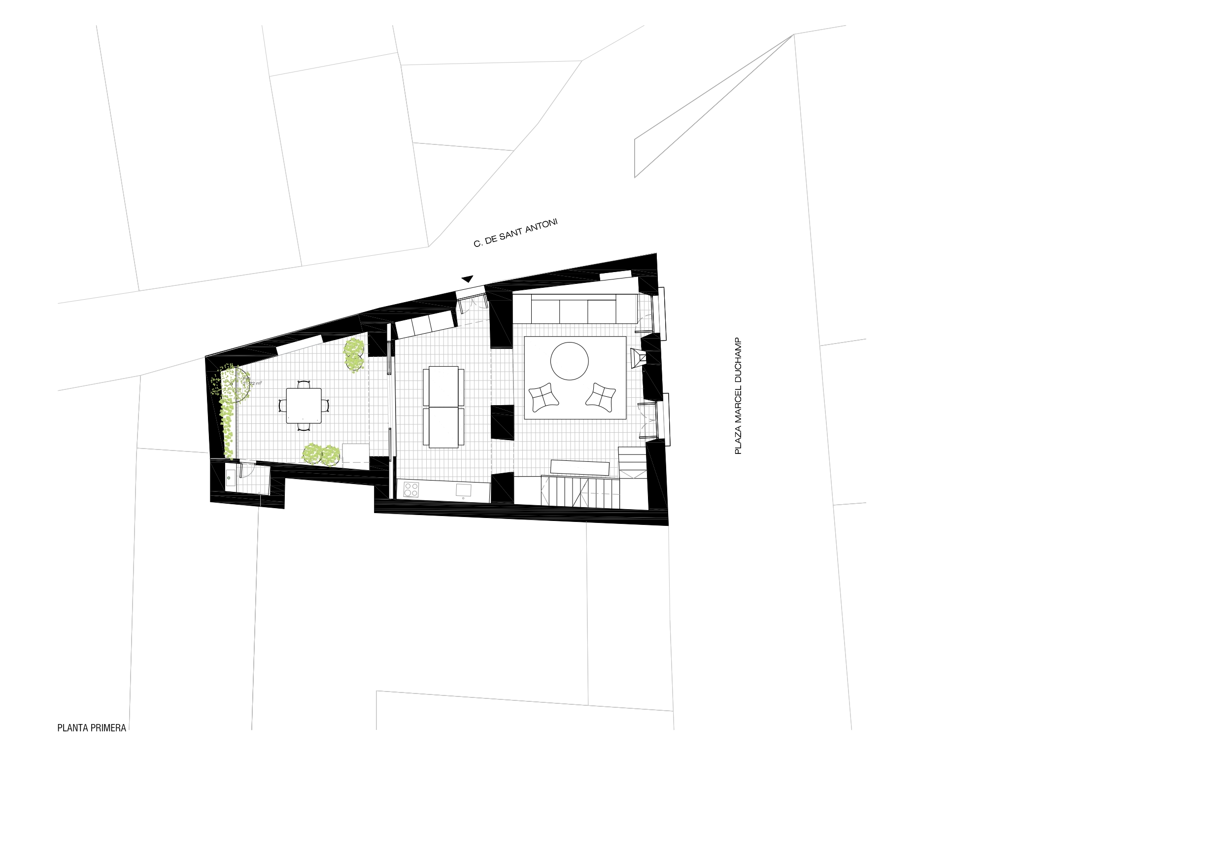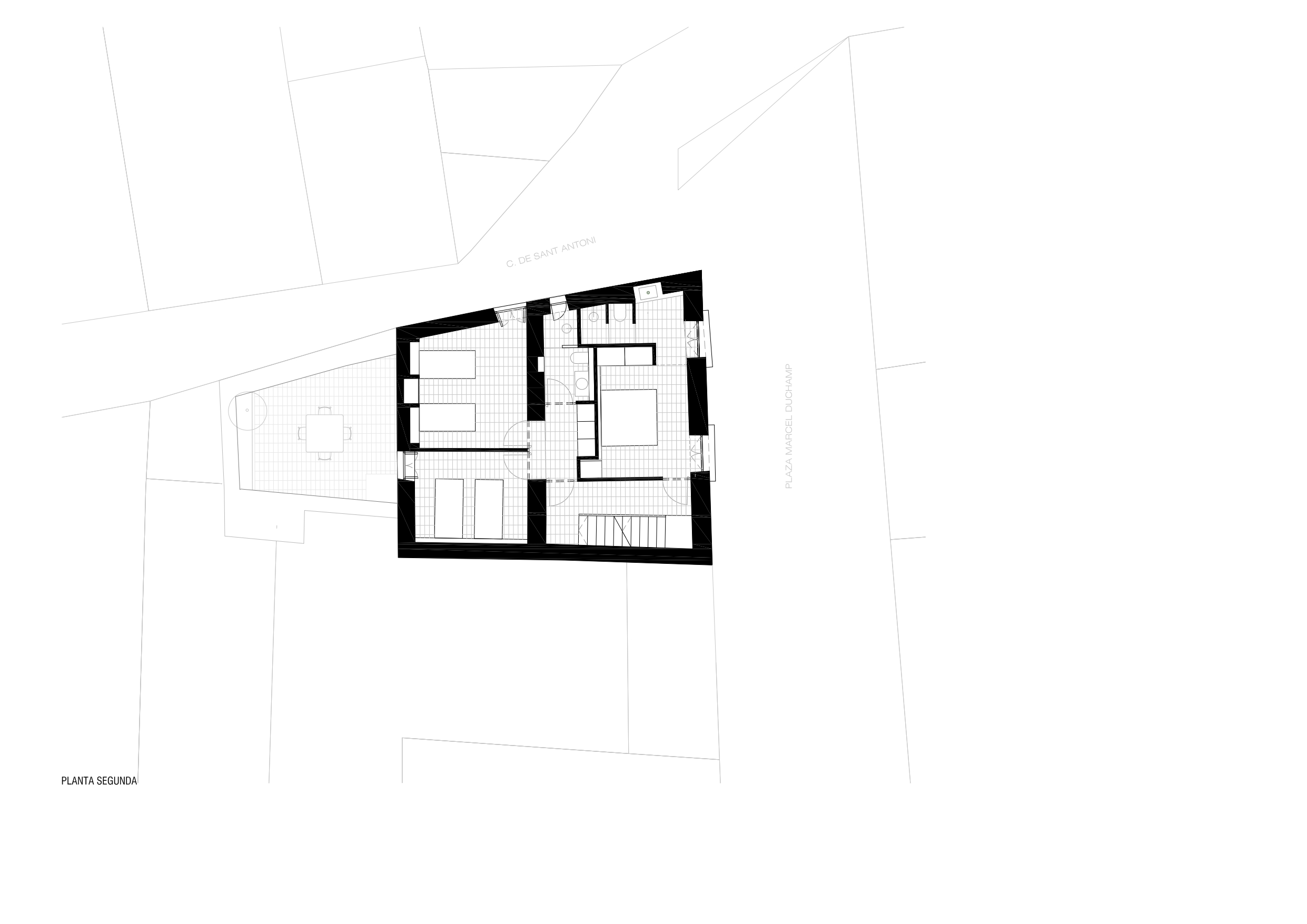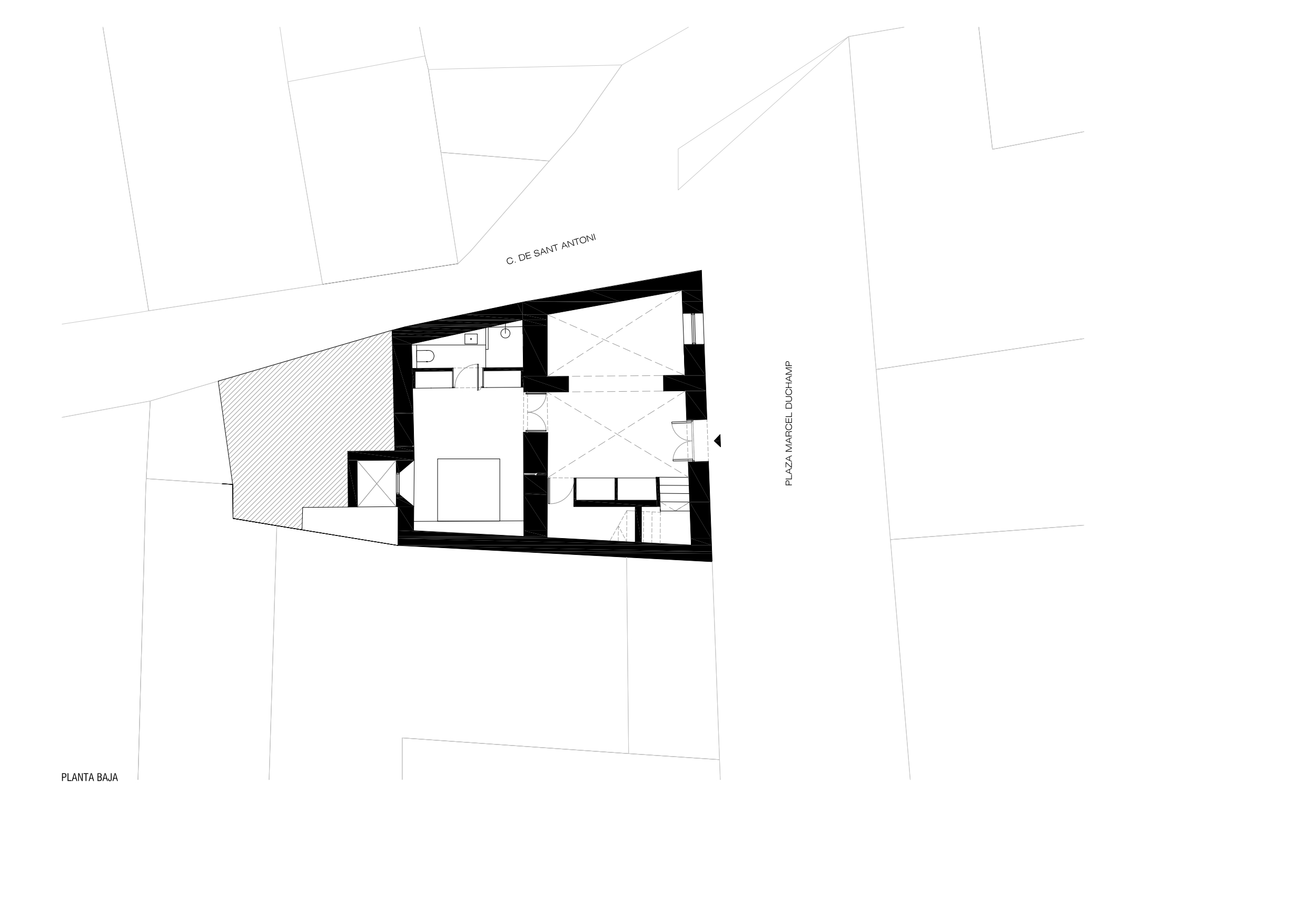 이 주택은 100년이 넘는 시간 동안 마을의 변화를 함께해왔다. 원래는 지역 어부의 주거였으며, 이후에는 여관으로 사용되었고, 한때는 상층부에 치안대 주둔 공간이 들어서기도 했다. 두께 약 50cm에 달하는 조적식 석조 내력벽, 상부 층의 목구조 보 천장, 1층의 카탈루냐식 볼트 천장 등은 지역 전통 건축의 특징을 지금까지 고스란히 간직하고 있다. 견고한 구조에도 불구하고 시간의 흔적은 깊었고, 이번 리노베이션은 보존과 갱신 사이의 섬세한 균형을 요구했다.