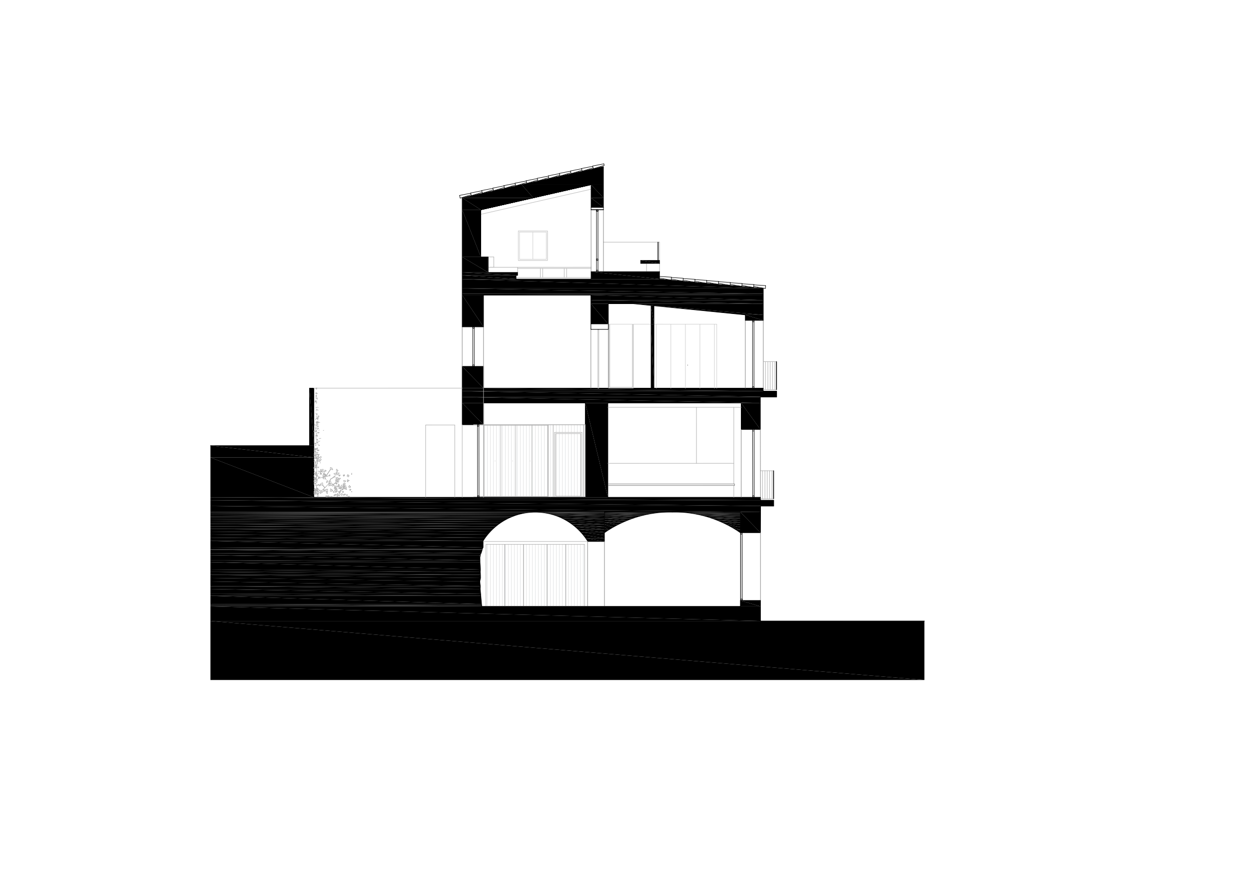 주택은 총 네 개 층으로 구성된다. 1층은 카탈루냐식 볼트 천장을 가진 공간으로, 아이들의 놀이 공간이나 해양 장비를 보관하는 다목적 공간으로 사용된다. 리노베이션 과정에서 새롭게 추가된 작은 파티오는 자연 채광과 환기를 유도하며, 암반을 파내 형성된 실내 공간에 빛과 공기를 끌어들이는 역할을 한다.