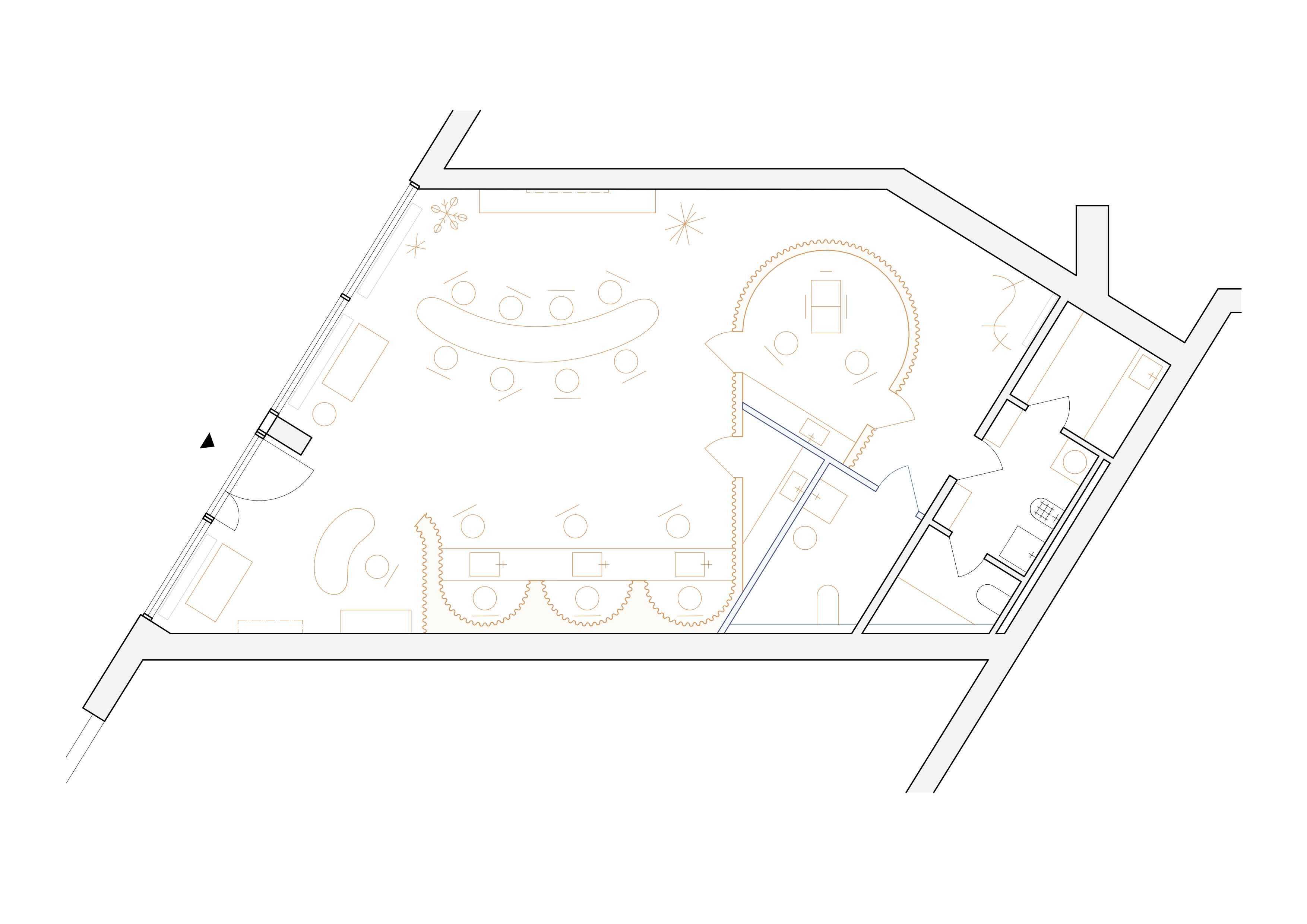 이 프로젝트는 스튜디오에게 익숙하지 않은 유형의 공간에서 출발했다. 그러나 그 낯섦은 오히려 공간을 새롭게 바라보는 계기가 되었고, 클라이언트와의 긴밀한 협업을 통해 살롱이라는 장소의 사용 흐름과 리듬을 면밀하게 이해하는 과정으로 이어졌다. 설계는 단순한 내부 구성에 그치지 않고, 방문자가 공간을 통과하며 경험하게 되는 일련의 장면들을 하나의 ‘연출’로 다루는 데 초점을 맞췄다.