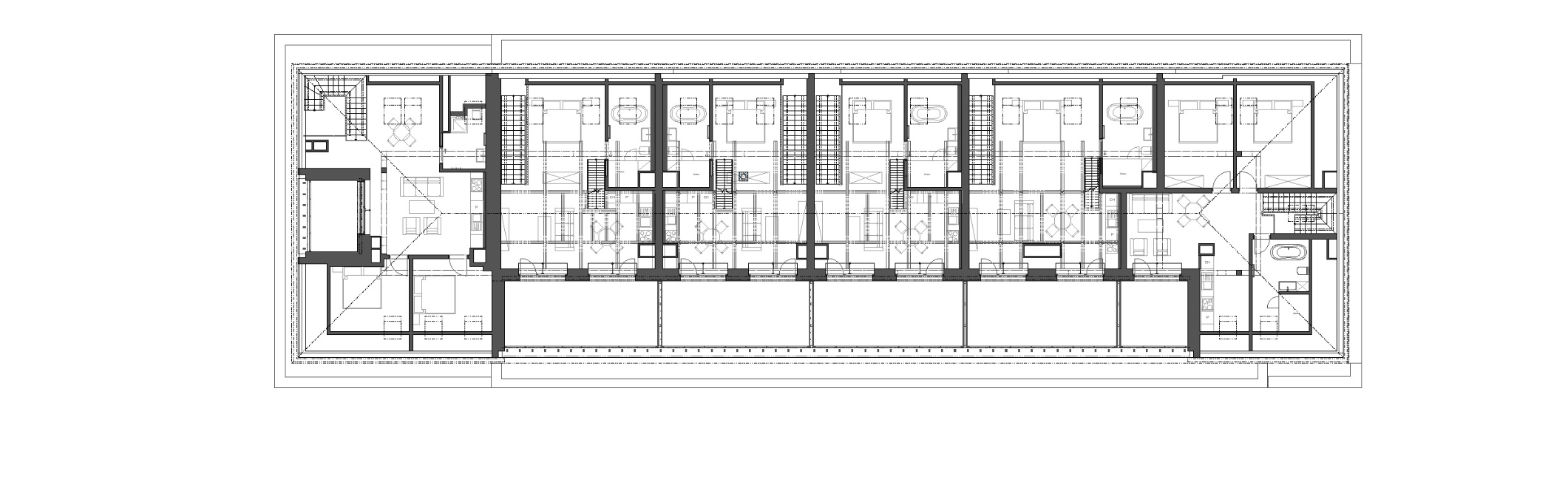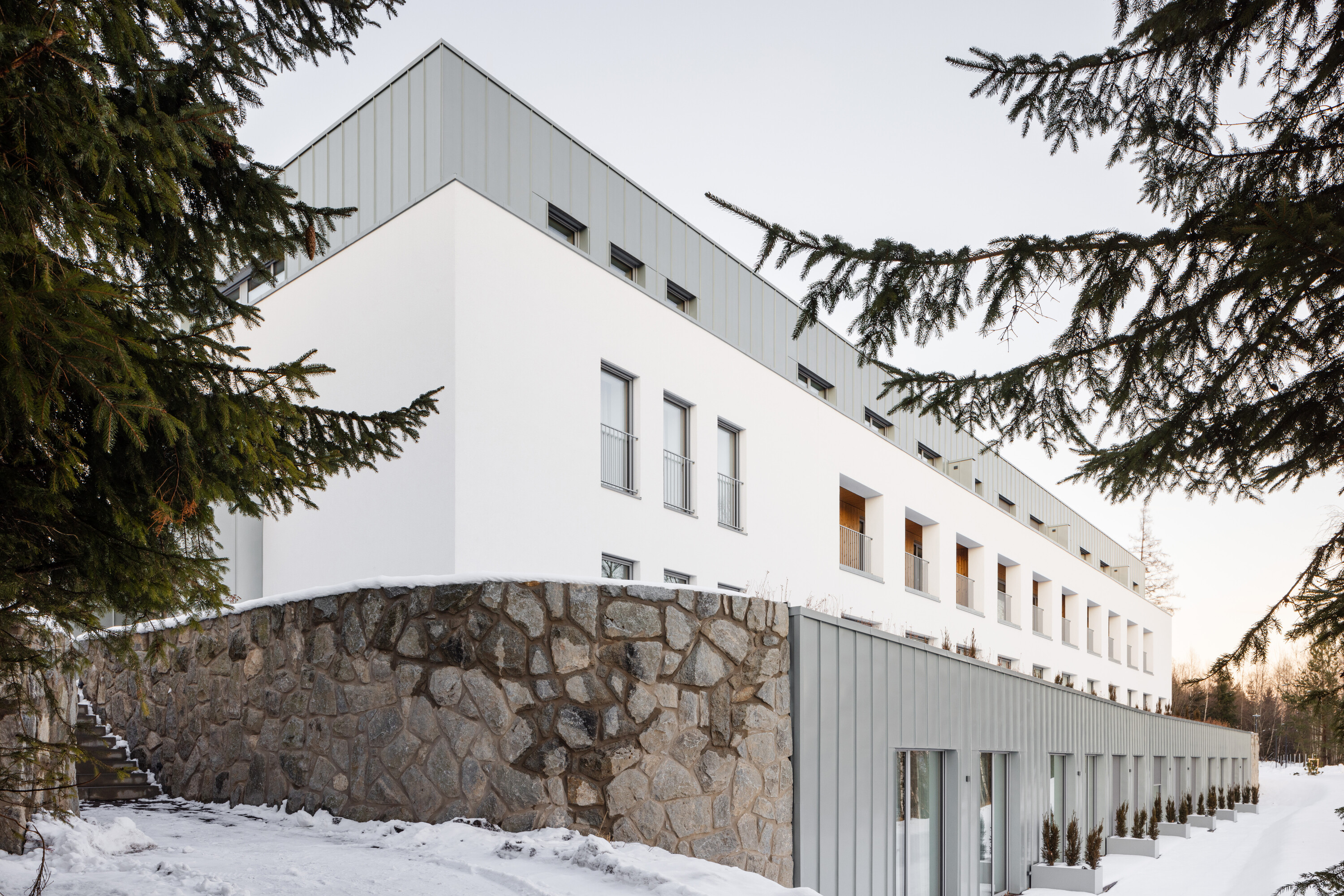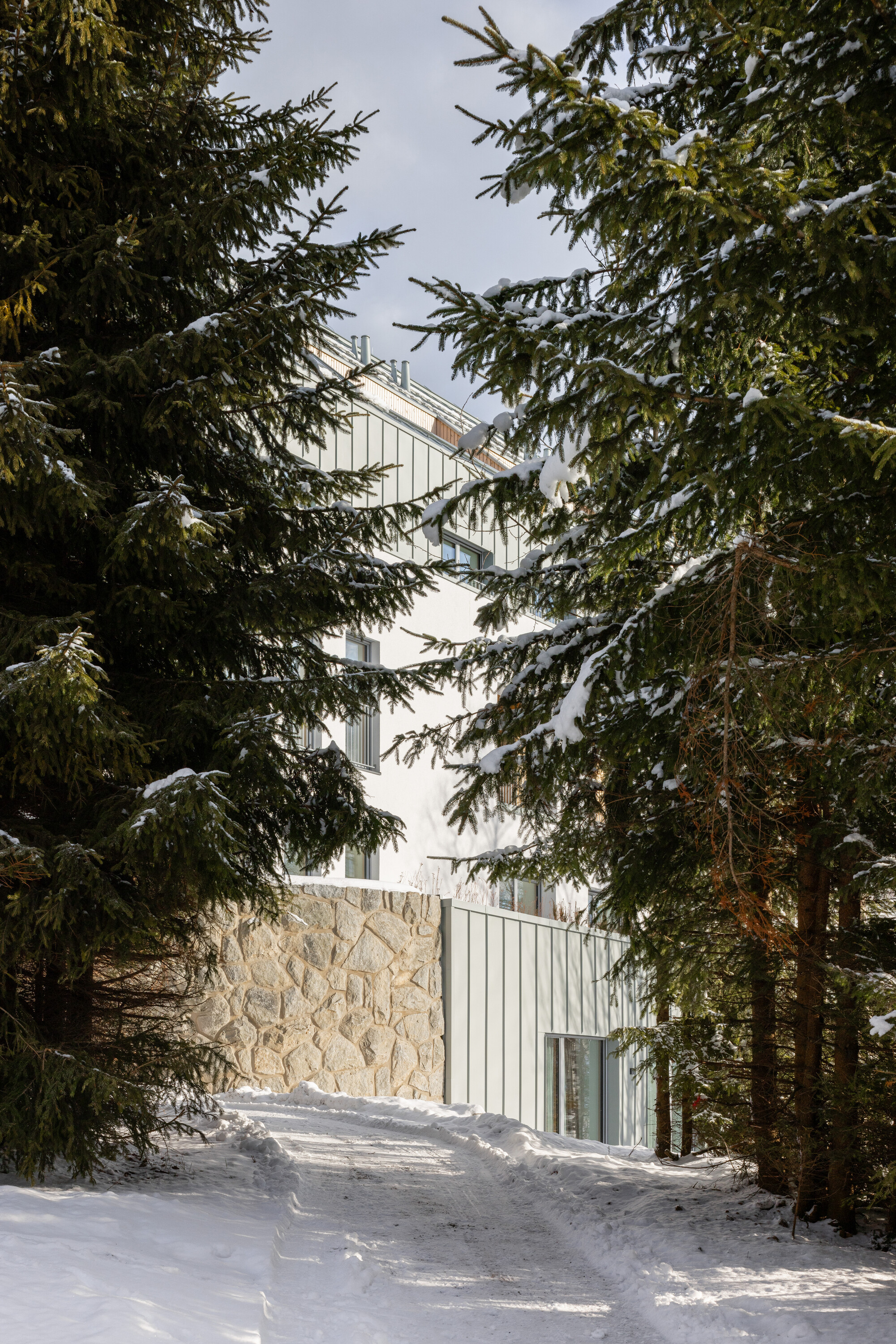 리노베이션의 전제는 명확했다. 타트라 국립공원(TANAP)과 비소케 타트리 시의 엄격한 규제, 그리고 모든 공간을 최대한 활용하고자 한 발주자의 요구가 동시에 작용했다. 설계는 기존 건물의 높이와 윤곽, 건축 면적을 유지한 채, 다락과 지하를 주거 공간으로 전환해 수용 규모를 확장하는 방식으로 진행되었다. 이는 산악 호텔 건축에서 영감을 받은 절제된 우아함을 회복하려는 시도이기도 했다.
