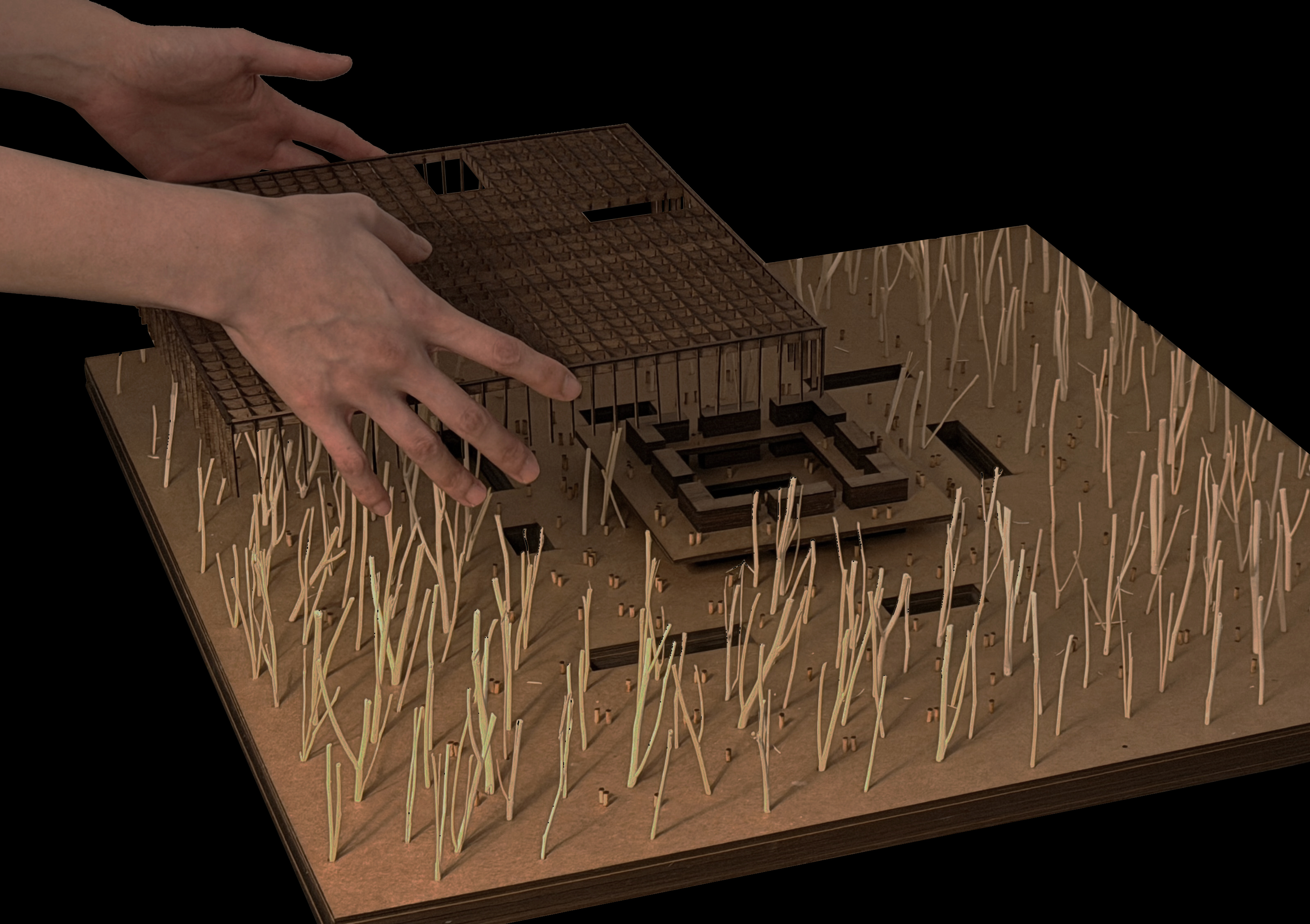 도서관과 공원의 경계를 9미터 반외부공간으로 넓혀 양가적 영역으로 전환하고자 한다. 내부와 외부, 도서관과 공원이라는 이분법적인 관계를 넘어 넓고 풍성한 경계라는 영역을 반외부공간으로 조성한다. 이 반외부공간의 켜는 열람실의 자연스러운 확장이 가능하고 동시에 외부의 식재가 연장되어 그늘막을 가진 공원과 같이 작동한다. 담수와 해수가 만나는 기수역(Brackish Water Zone)이 생태계 중 가장 생산성이 높은 자연의 이치와 같이 공원과 도서관의 중간지대에 책과 자연을 매개로 한 풍성한 시민들의 활동이 일어날 것이다.
