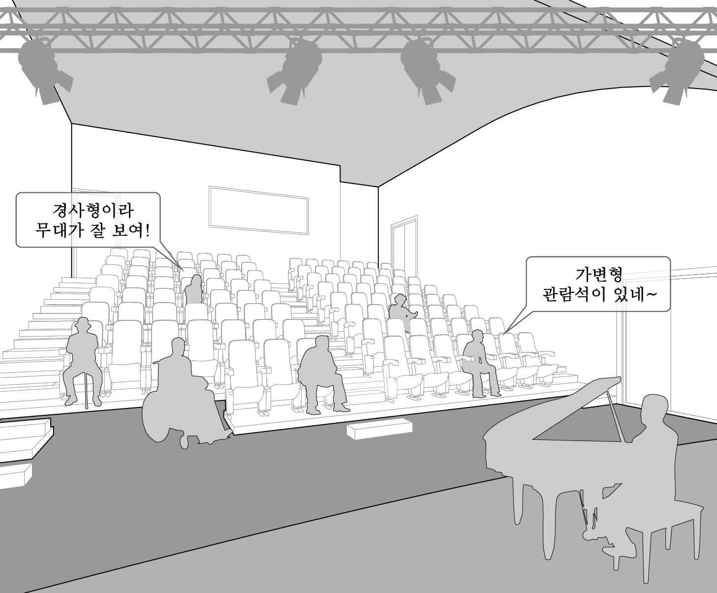 강당, 다목적실, 마을커뮤니티공간, 청소년공간 등 주요 프로그램은 홀을 중심으로 배치된다. 각 공간은 높은 벽이나 폐쇄적인 구획으로 나뉘기보다, 서로의 위치와 활동이 자연스럽게 느껴질 수 있도록 열려 있다. 이를 통해 이용자는 한 공간에 머무르면서도 주변에서 어떤 활동이 이루어지고 있는지 쉽게 인지할 수 있다. 이러한 구성은 특정 프로그램이 운영되지 않는 시간에도 공간이 닫히지 않고, 일상의 흐름 속에서 지속적으로 사용되도록 한다.