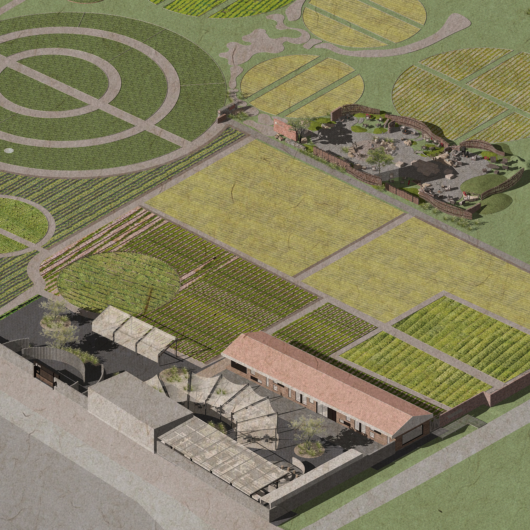 설계를 맡은 Fon Studio는 농업과 요리를 디자인의 출발점으로 삼았다. 흙과 돌로 만들어진 고대 조리 도구 ‘자오(Zao)’의 개념과 농장의 생동하는 풍경을 결합해, 식사와 농업 체험, 가족 간의 교류가 자연스럽게 이어지는 복합적 장소를 구상했다. 약 40에이커 규모의 농지와 기존 온실은 이 프로젝트의 물리적 기반이 되었고, 프로그램과 동선은 풍경을 따라 점진적으로 펼쳐진다.