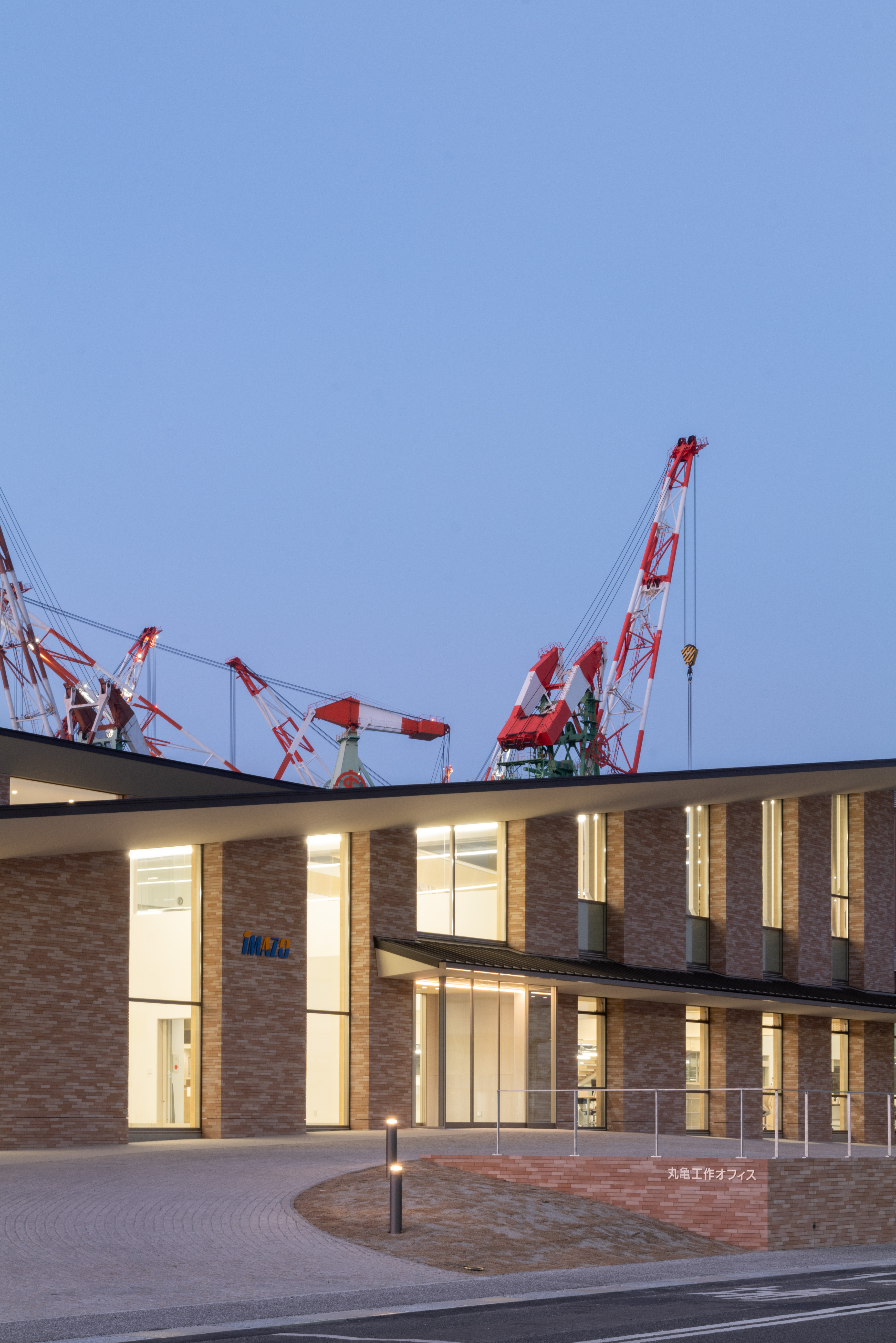 일본 가가와현 마루가메에 위치한 Imabari Shipbuilding Marugame Office Headquarters는 대규모 산업 단지 내에 흩어져 있던 조직과 인력을 하나의 공간으로 재구성한 오피스 프로젝트이다. 약 0.88㎢에 이르는 조선소 부지 곳곳에 분산되어 있던 협력사, 공급업체, 관리 부서, 방문객 동선을 통합하는 것이 설계의 출발점이었다. 설계를 맡은 야노아오야마 건축설계사무소(YanoAoyama Architectural Design Office)는 물리적 통합을 통해 관계와 소통 구조를 재정비하는 건축적 해법을 제시했다.
