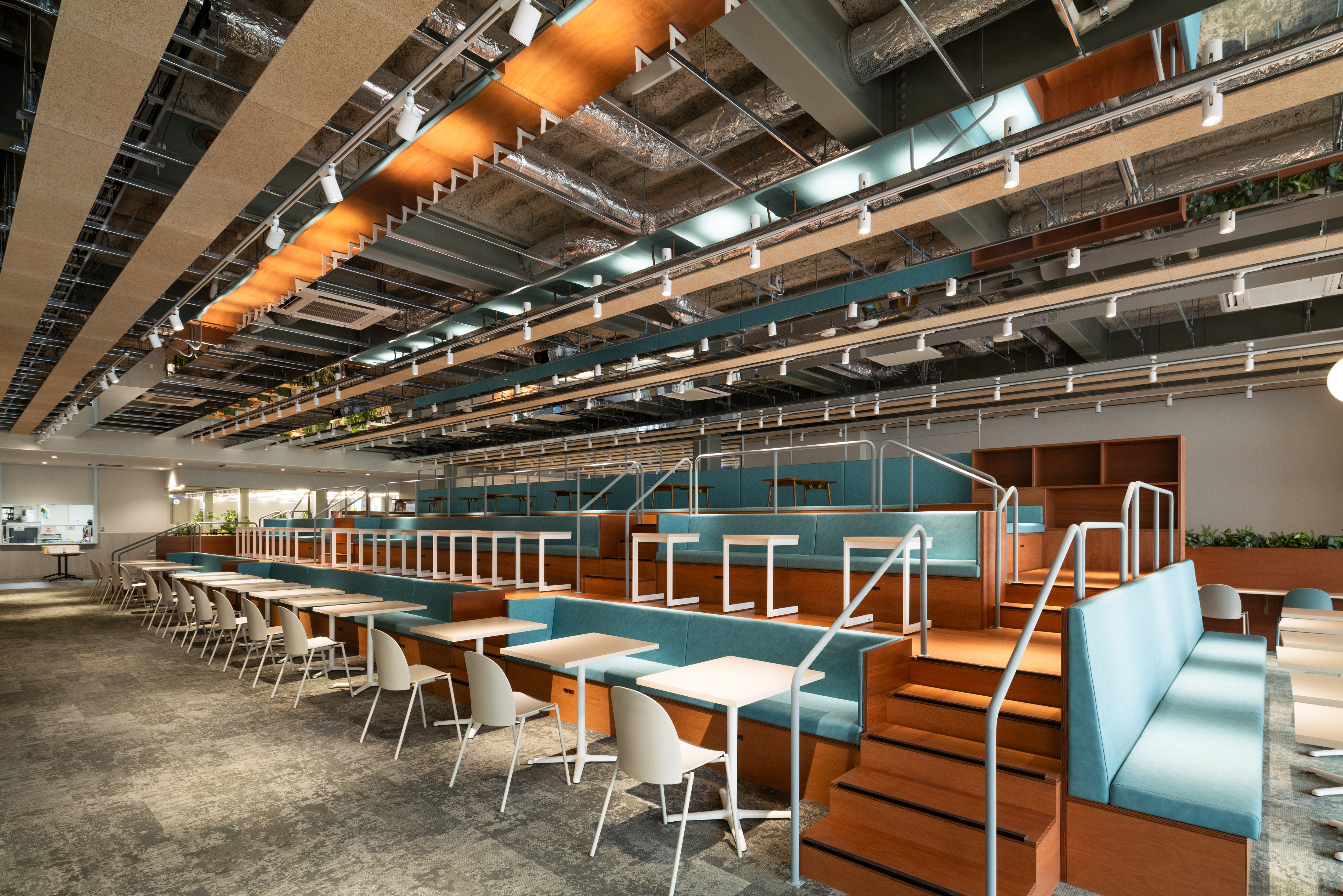 구조적 측면에서는 고정된 구조 스팬을 채택해 공사 비용을 절감하고 시공 속도를 높였다. 파일 두부와 기둥을 일체화하는 방식은 콘크리트 사용량을 줄이며 탄소 배출을 낮추는 데 기여했다. 대공간에는 엇갈려 배치된 H형강 기둥을 적용해 구조적 안정성을 확보했고, 보조 공간에는 사각 HSS 단면을 사용해 보다 유연한 분위기를 형성했다. 주보 위에 배치된 2차 보 시스템은 배선과 환기 덕트를 정리하는 역할을 하며, 천장 마감을 매끄럽게 완성한다.