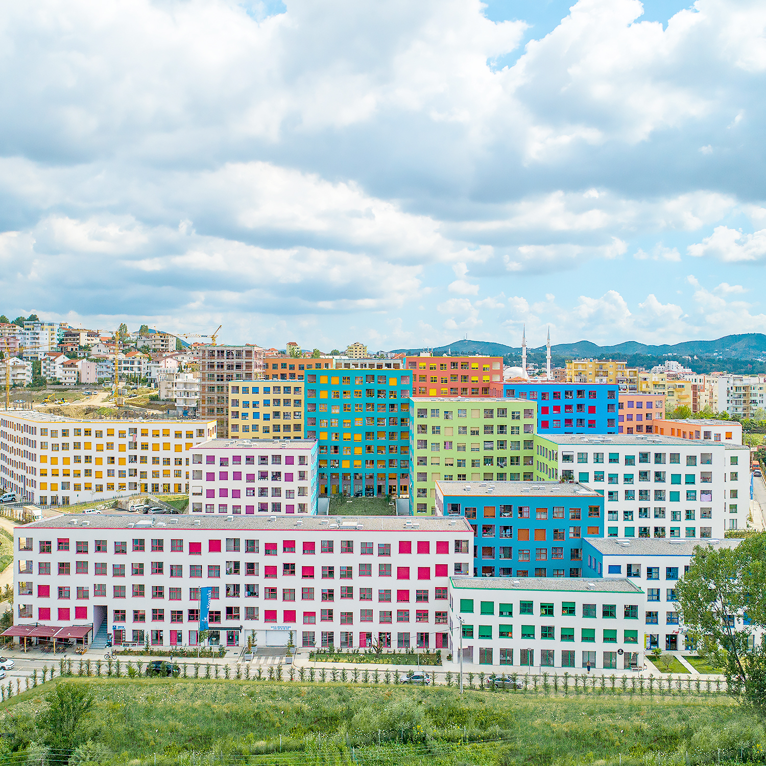 알바니아 티라나에 들어선 Mangalem 21은 공산주의 체제 붕괴 이후 실현된 최대 규모의 주거 개발 프로젝트이다. 설계를 맡은 오엠에이(OMA)는 총 1,234세대로 구성되는 이 단지를 통해 알바니아의 도시 확장 맥락을 건축적으로 재해석했다. 현재 10개 단계 중 6개 단계가 완료되었으며, 728세대가 이미 공급되었다.