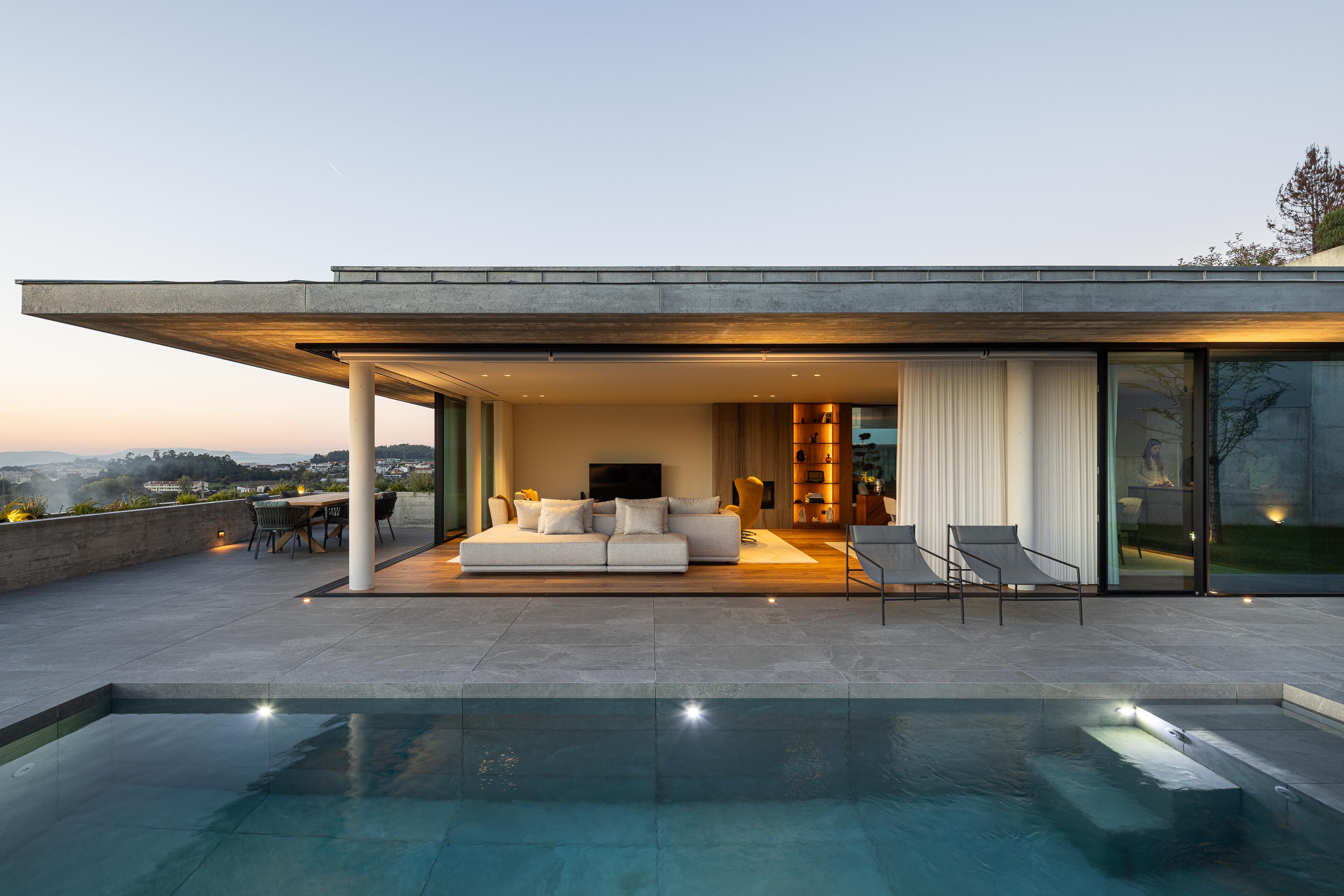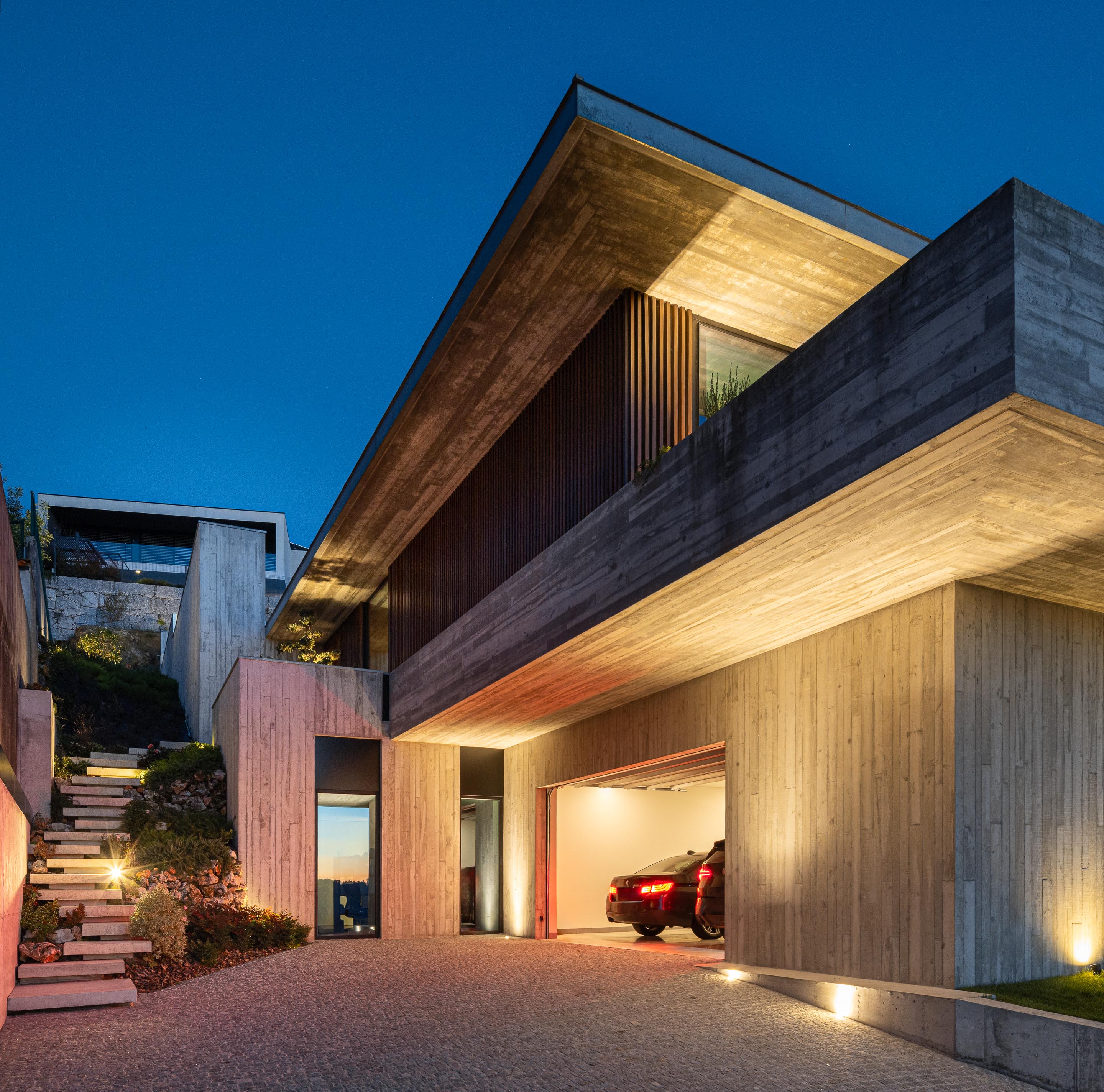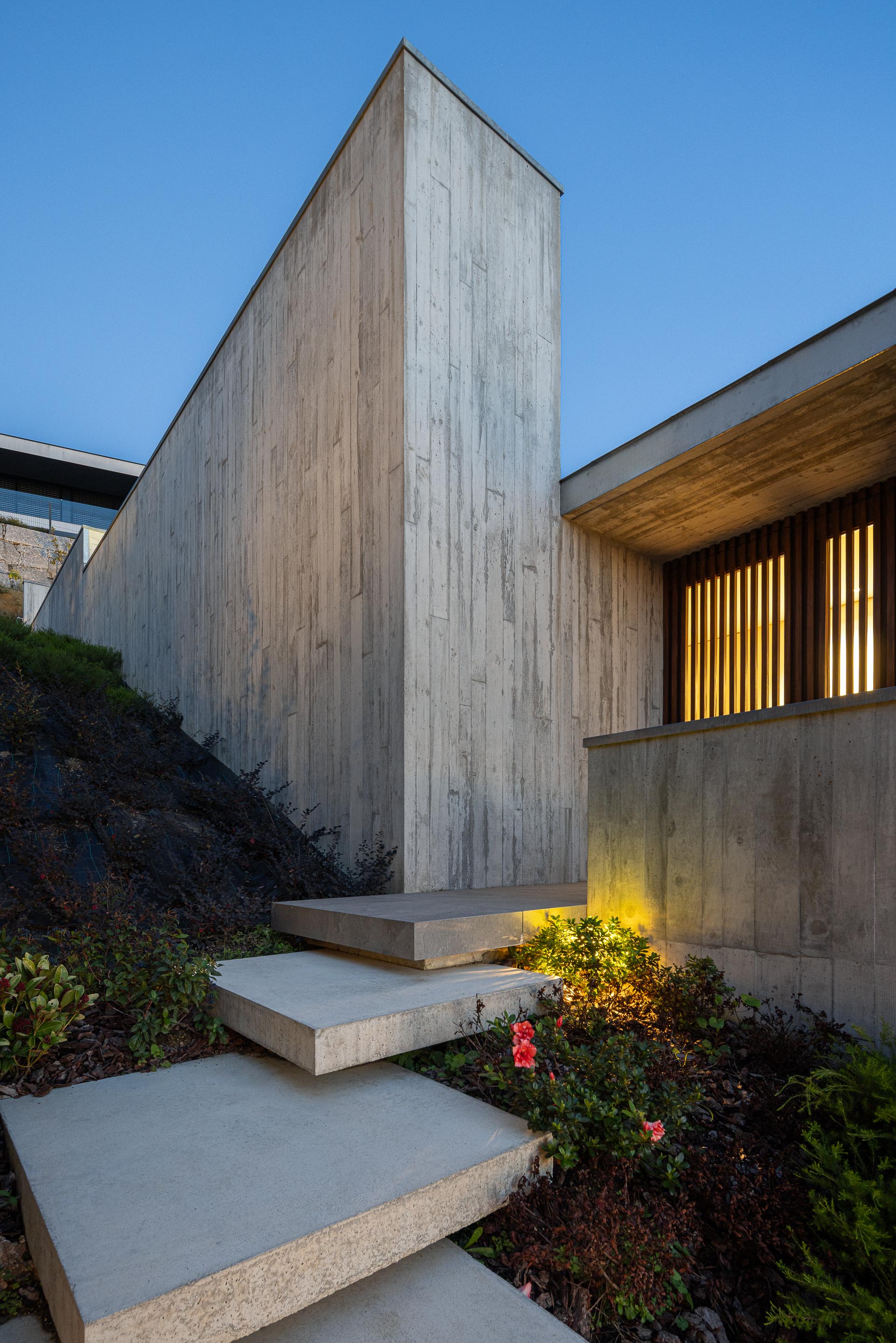 두 개의 단순한 수평면이 엇갈려 놓이며 경사면을 감싼다. 이 수평 구조는 형태적으로는 절제되어 있지만, 배치에서는 역동성을 가진다. 주거 공간은 남쪽과 서쪽으로 열려 태양을 향한다. 내부에서는 브라가의 풍경이 액자처럼 프레이밍되어 들어온다.
