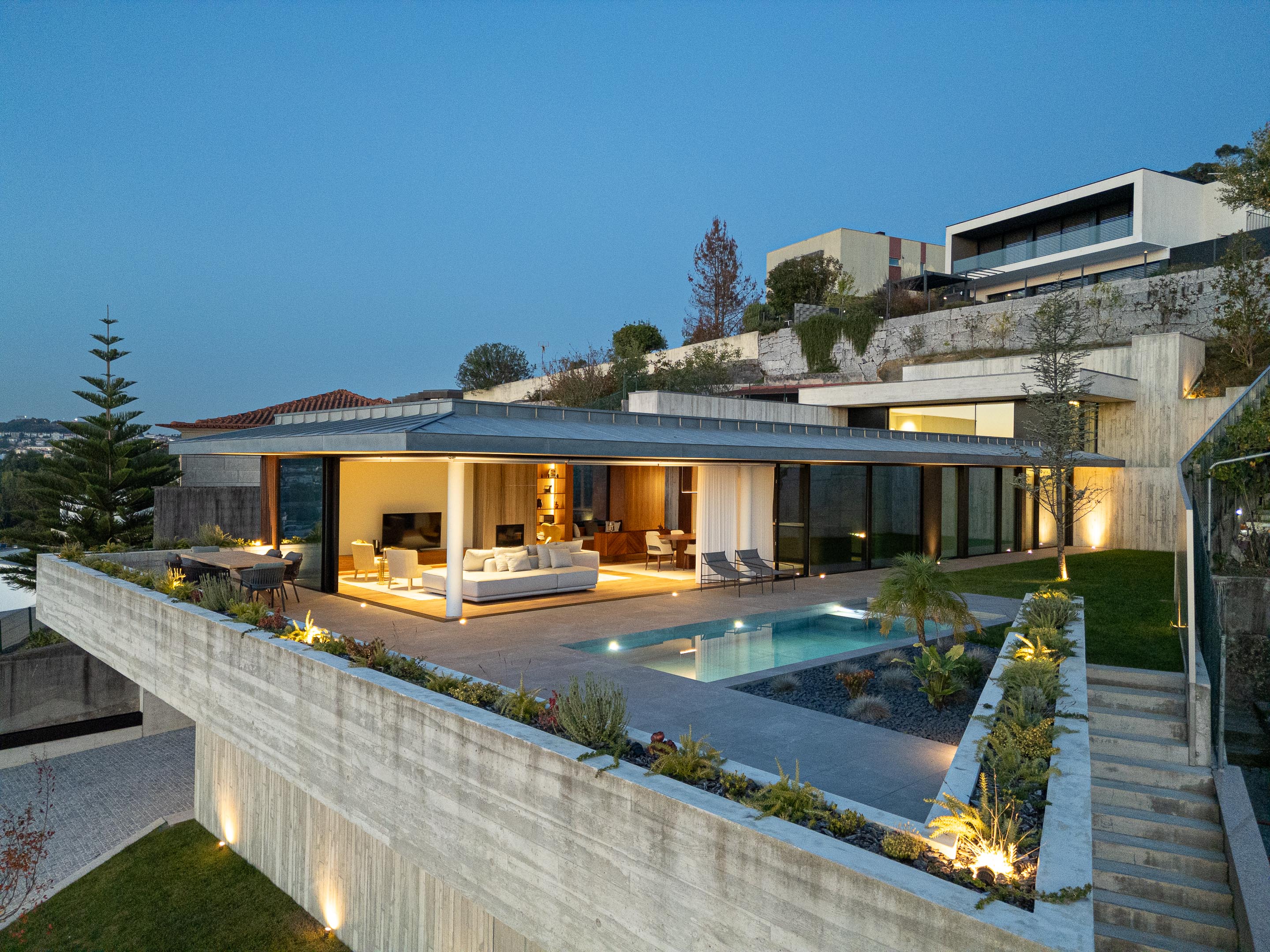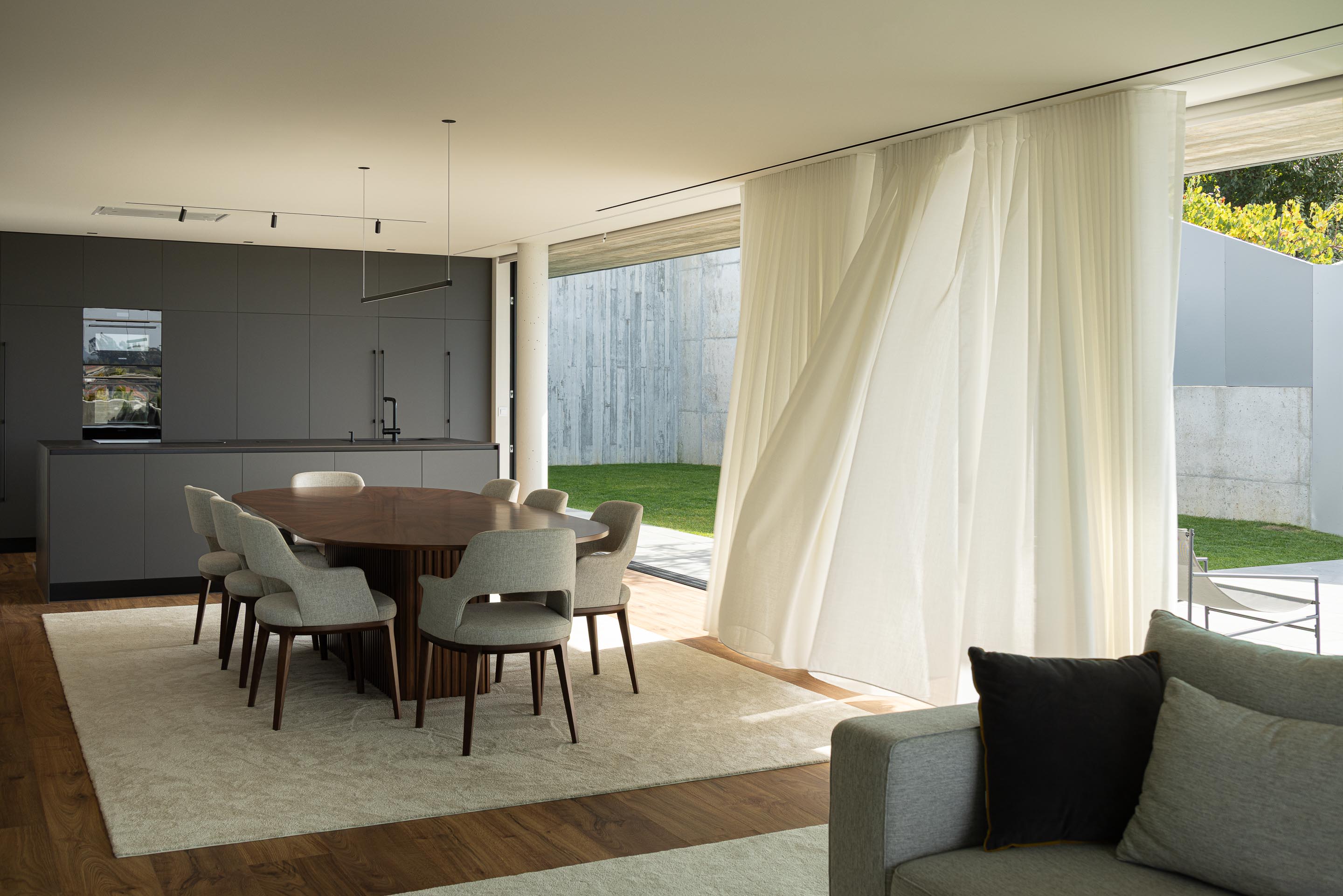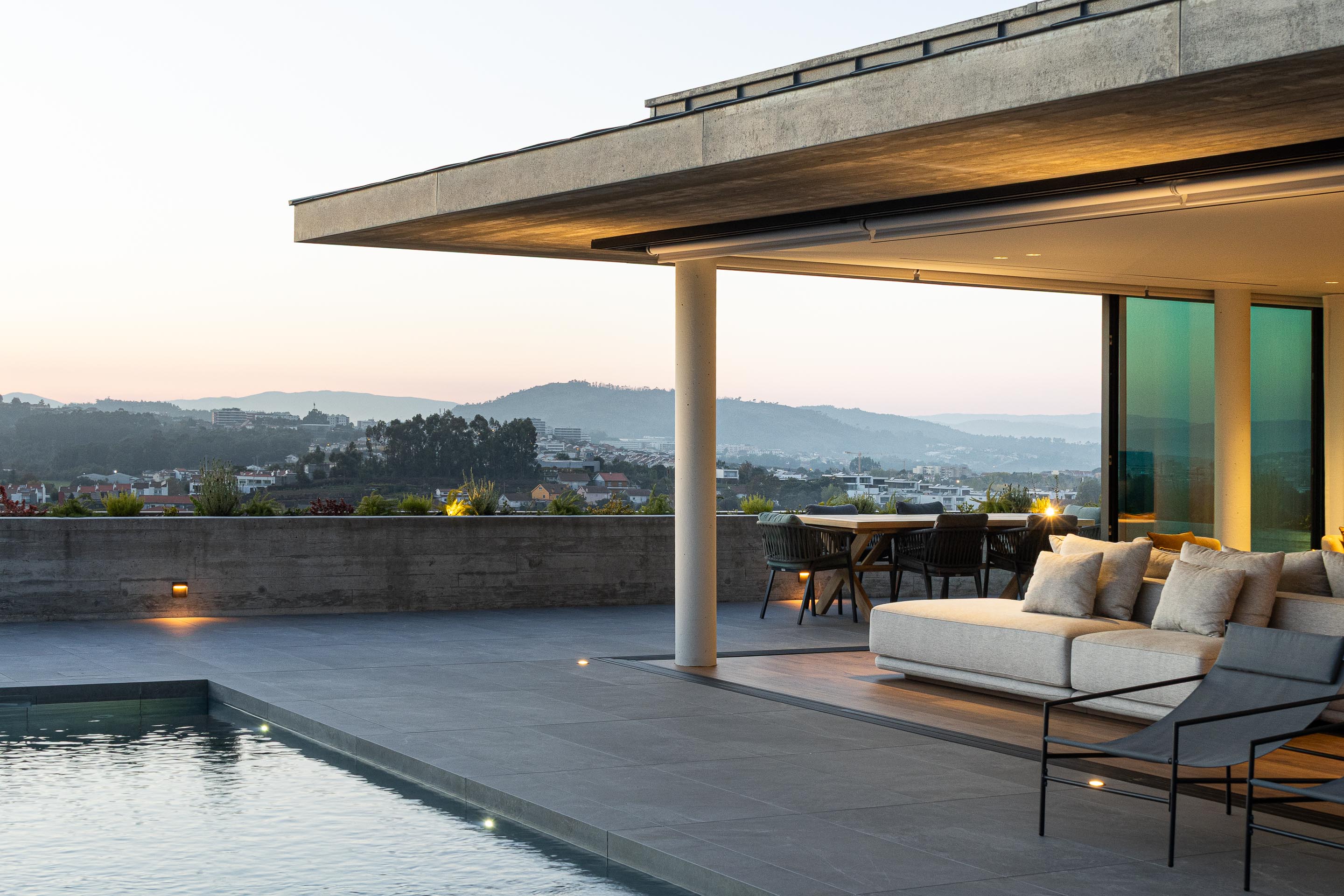 두 개의 단순한 수평면이 엇갈려 놓이며 경사면을 감싼다. 이 수평 구조는 형태적으로는 절제되어 있지만, 배치에서는 역동성을 가진다. 주거 공간은 남쪽과 서쪽으로 열려 태양을 향한다. 내부에서는 브라가의 풍경이 액자처럼 프레이밍되어 들어온다.