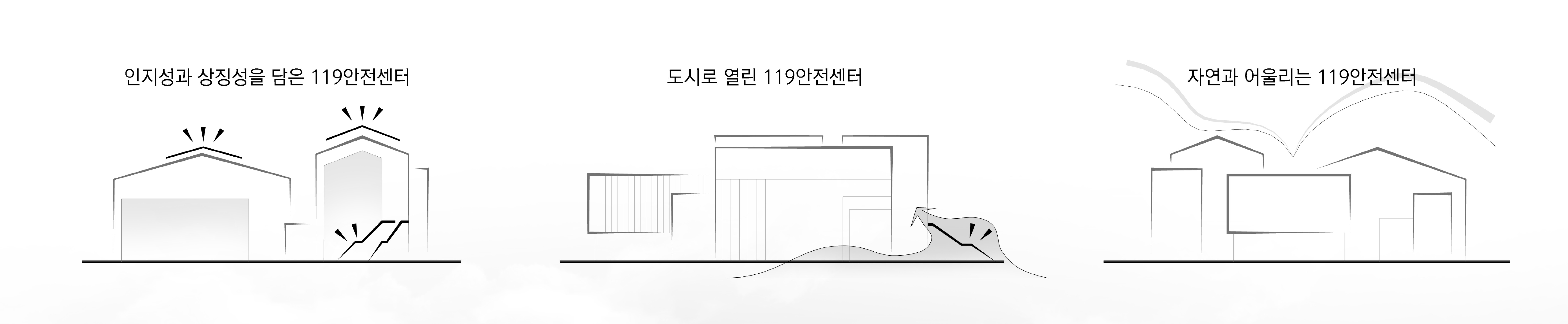 119안전센터는 도시의 위급한 순간 가장 먼저 움직이는 공간이다. 사이렌이 울리기 전의 고요와, 출동 직후의 긴장, 그리고 다시 일상으로 돌아오는 짧은 숨. 우리는 이 반복되는 시간의 결을 따라, 대응을 위한 기능만이 아닌 머무름과 회복의 감각까지 담아내고자 한다. 이 공간은 단순히 재난에 반응하는 시설이 아니라, 도시의 안전을 지키는 동시에 그 안의 사람을 회복시키는 또 하나의 생활 환경이어야 한다. 자연과 도시, 일상과 대응, 긴장과 회복이라는 서로 대비되는 가치들이 충돌하지 않고, 하나의 흐름 안에서 조용히 공존하는 공간의 질서를 만드는 데서 출발한다.