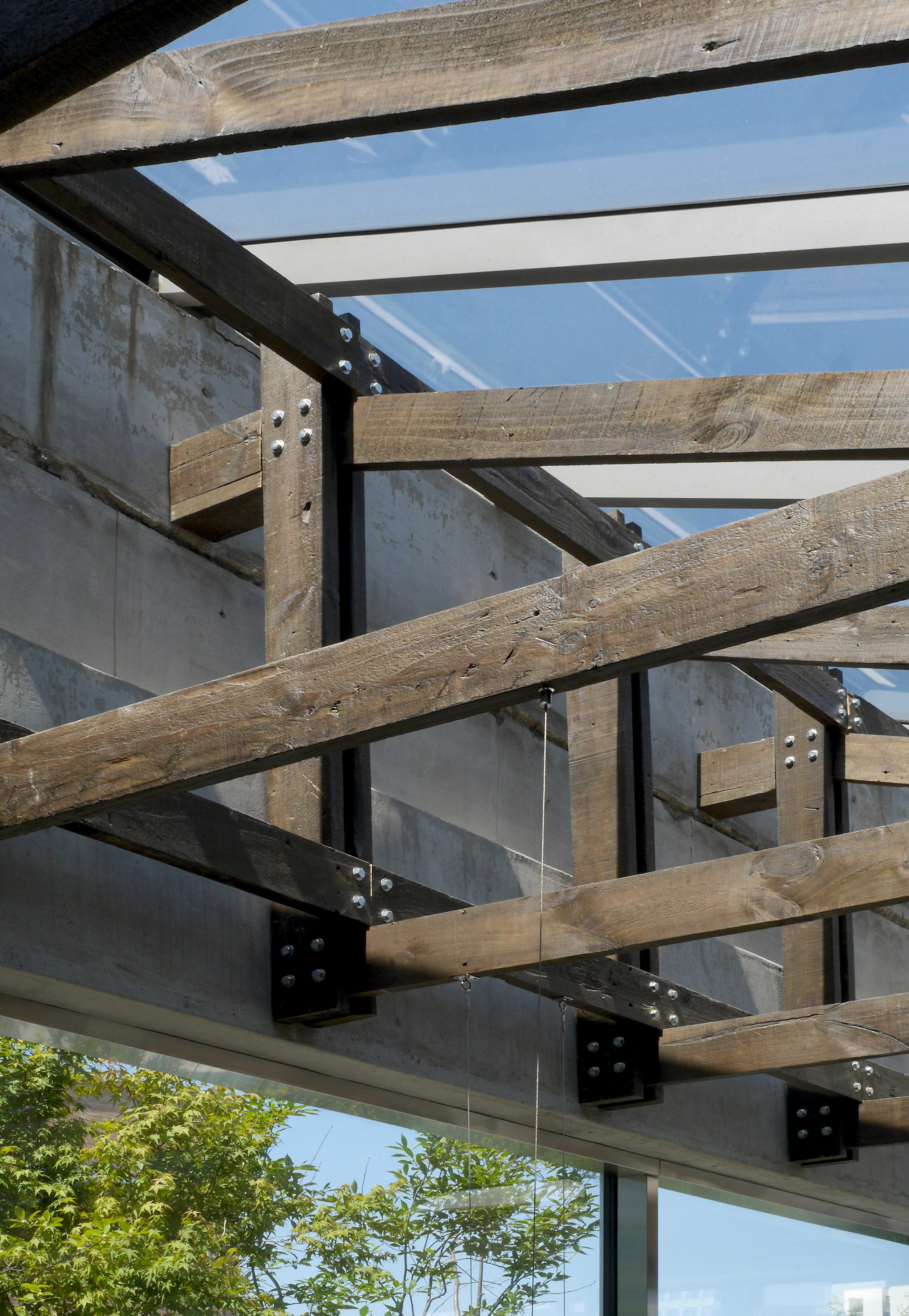 2층 슬래브의 절반, 4층 슬래브의 약 3분의 2를 과감히 제거하고, 네 개 층 높이를 관통하는 수직적 공간을 만들었다. 물리적으로는 두 개 층이지만 체감적으로는 훨씬 더 확장된 볼륨이 만들어졌다.