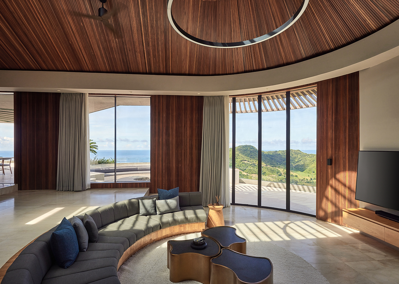 전체적인 제스처는 명확하지만 과장되지 않는다. 건축물의 형태와 공간은 모두 명확한 이유를 가진다. 티크 목재 천장, 오프화이트 벽체, 팔리마난 석재 바닥과 같은 따뜻하고 절제된 재료의 사용은 공간의 연결성을 돋보이게 하며, 건축이 풍경 속으로 자연스럽게 스며들도록 한다.